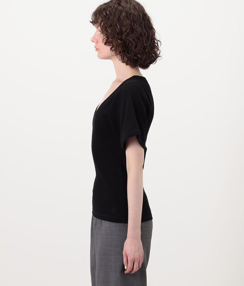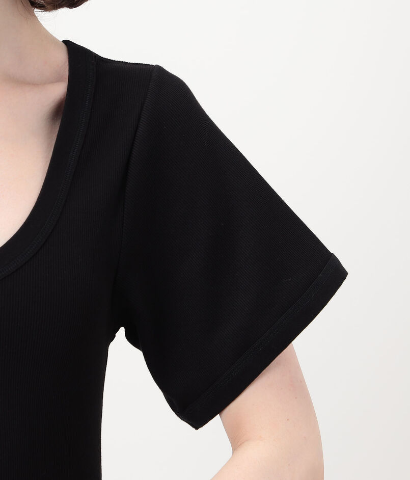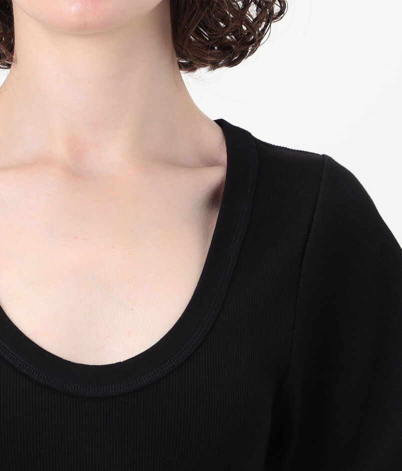 深めのネックラインがデコルテを美しく見せてくれるUネックのカットソー。