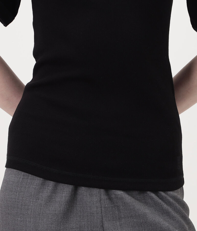 伸縮性のあるオーガニックコットン混紡素材を使用し、程よくフィットするセミスリムシェイプがボディラインをすっきりと魅せてくれます。