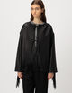 リボン留め、控えめなサイドポケットが洗練された雰囲気を醸し出します。