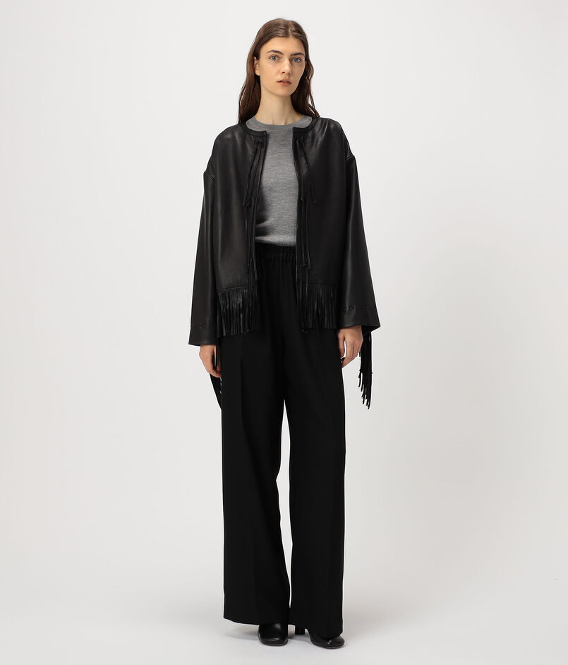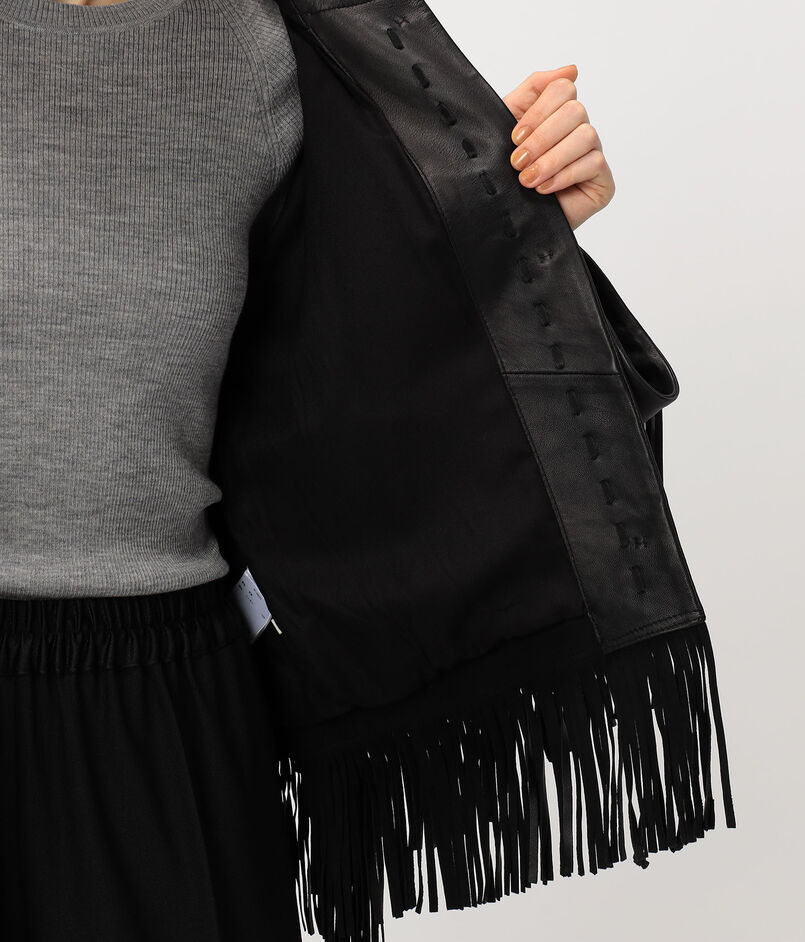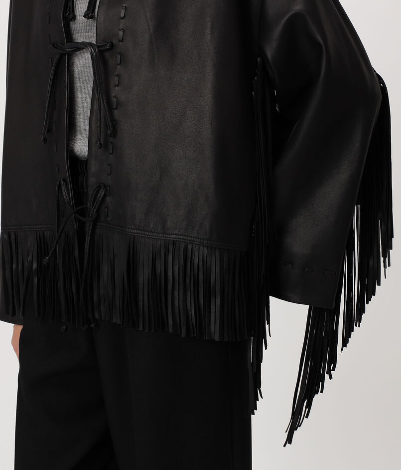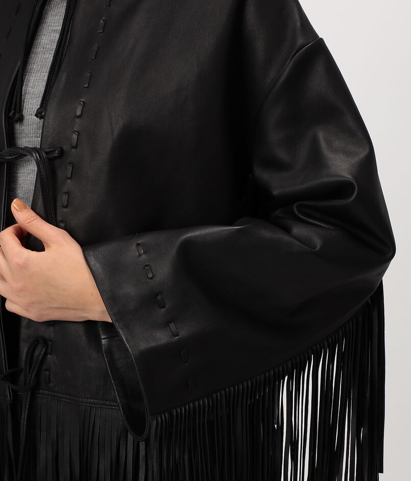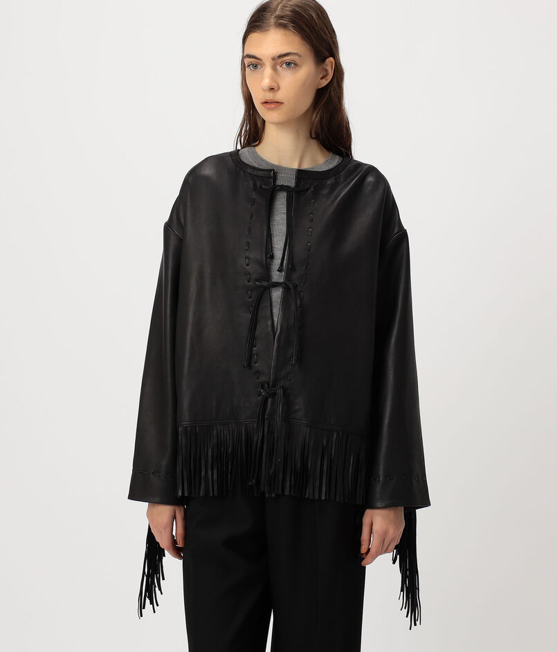袖から流れるフリンジのレザーがポイントになったレザージャケット。