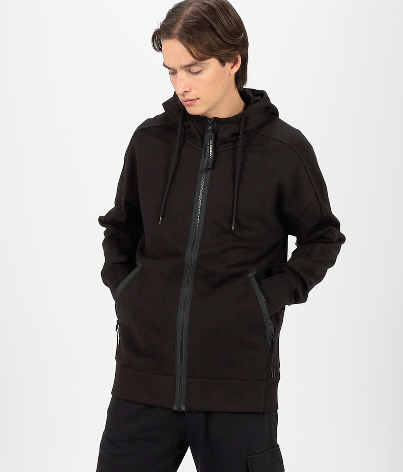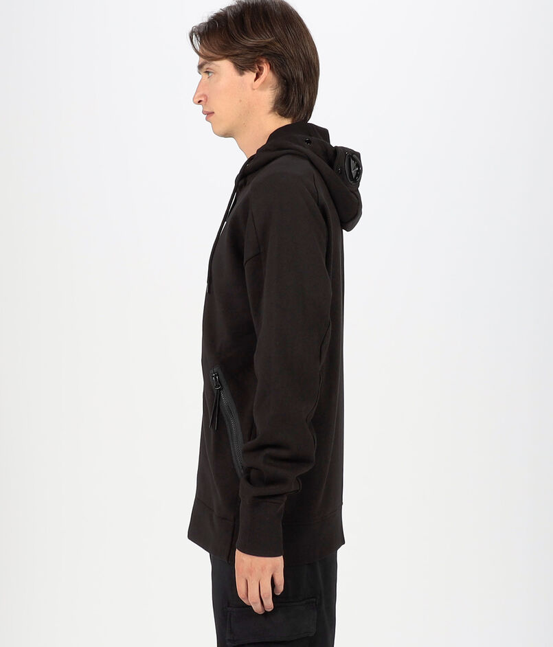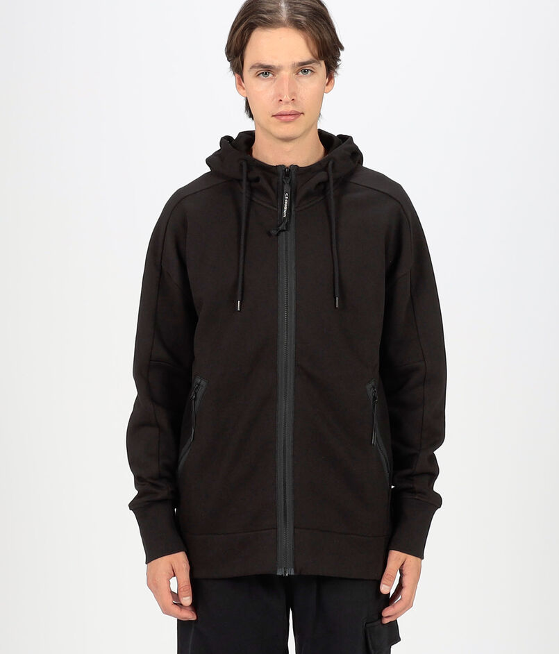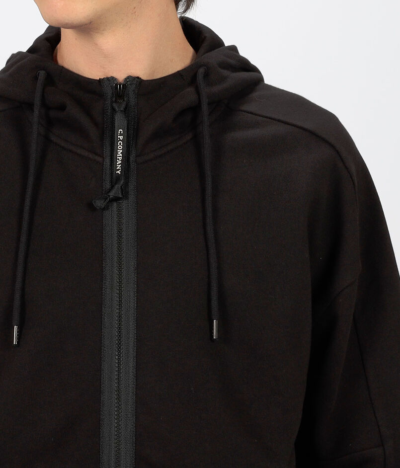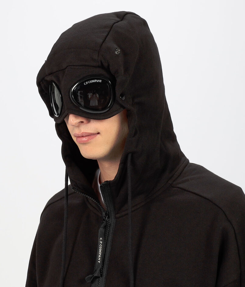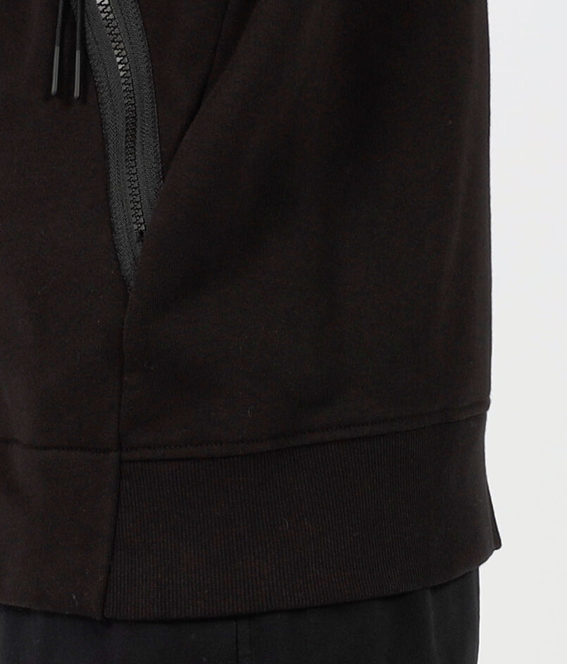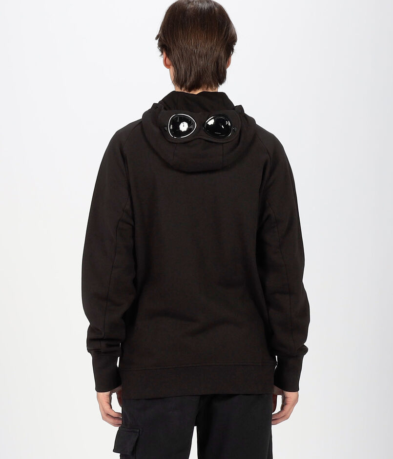 ブランドを象徴する、スナップボタンで調整可能なゴーグルフードが配されたフーディー。