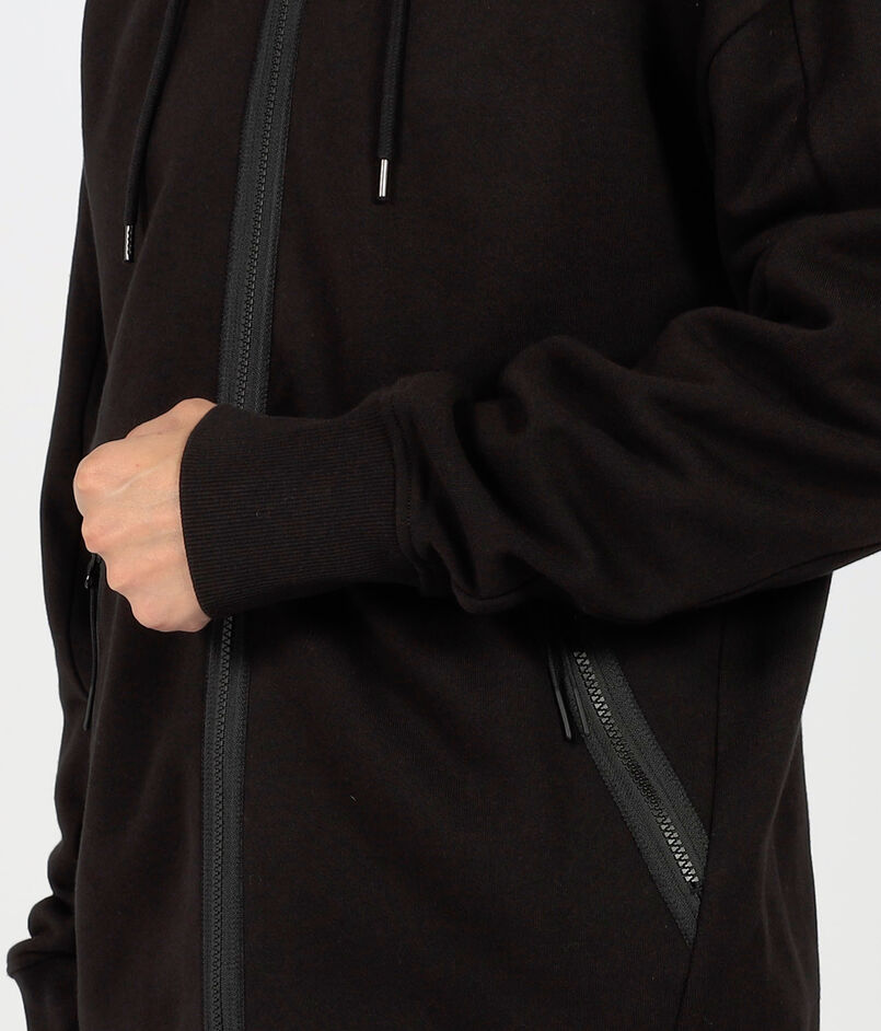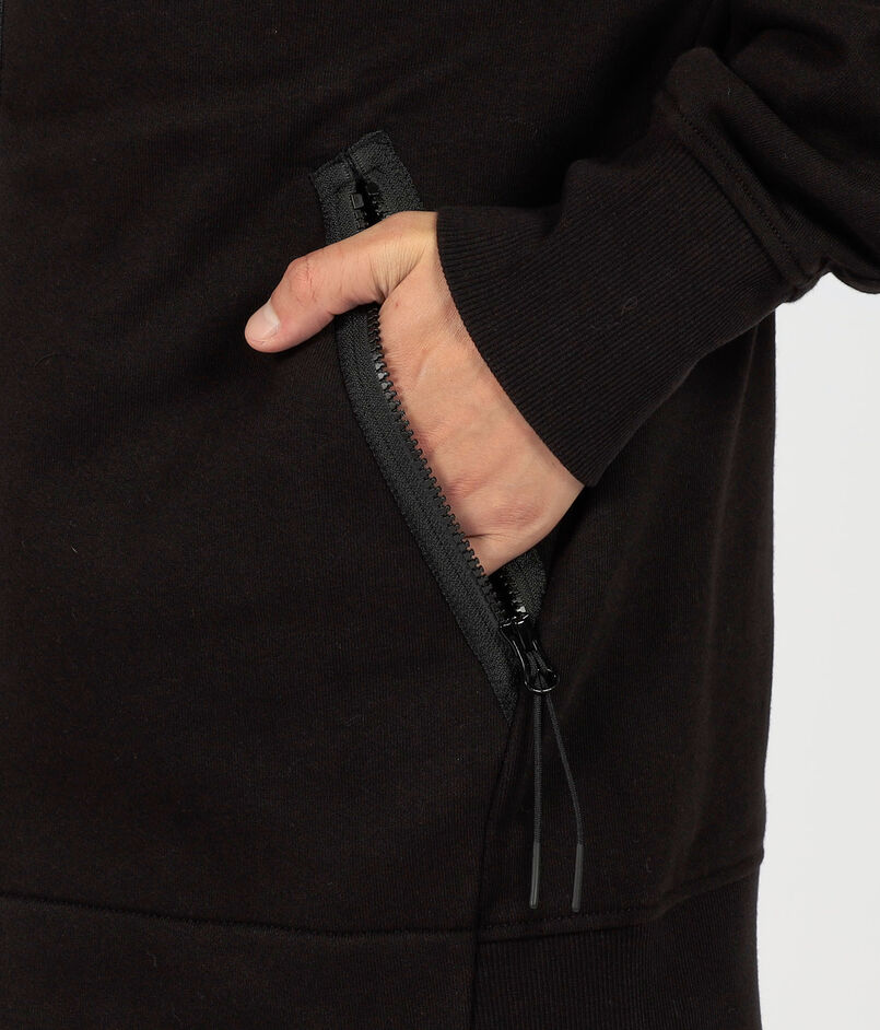 袖口のサムホールやジップポケットなど、細部にこだわりのディテールが光ります。