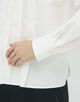 緯糸にコットンシルクの糸を打ち込み、パウダーなタッチと高級感を出した肉厚のコットンシルクタイプライター素材を使用したシャツ。