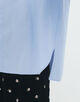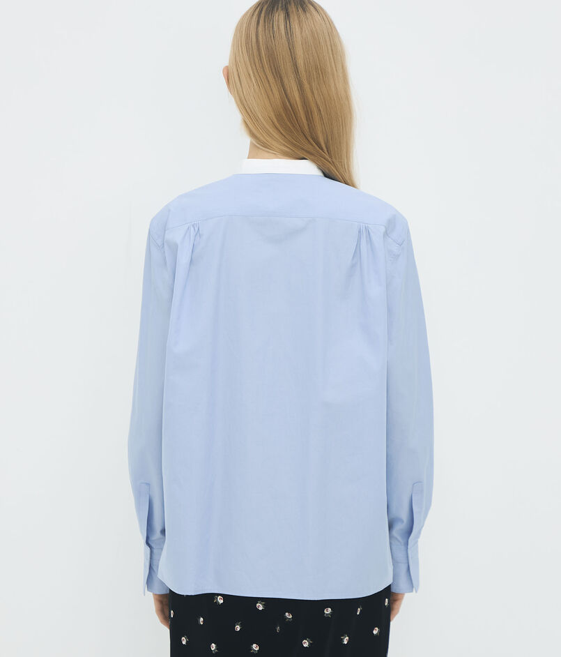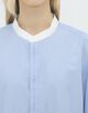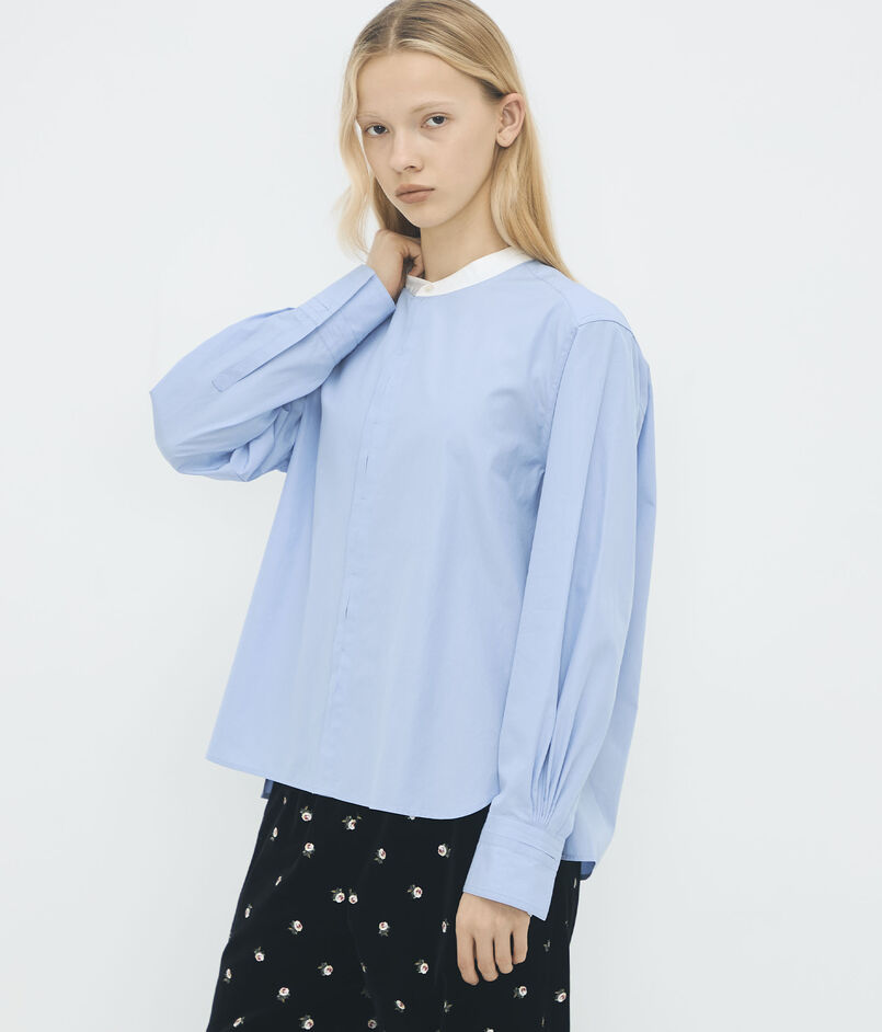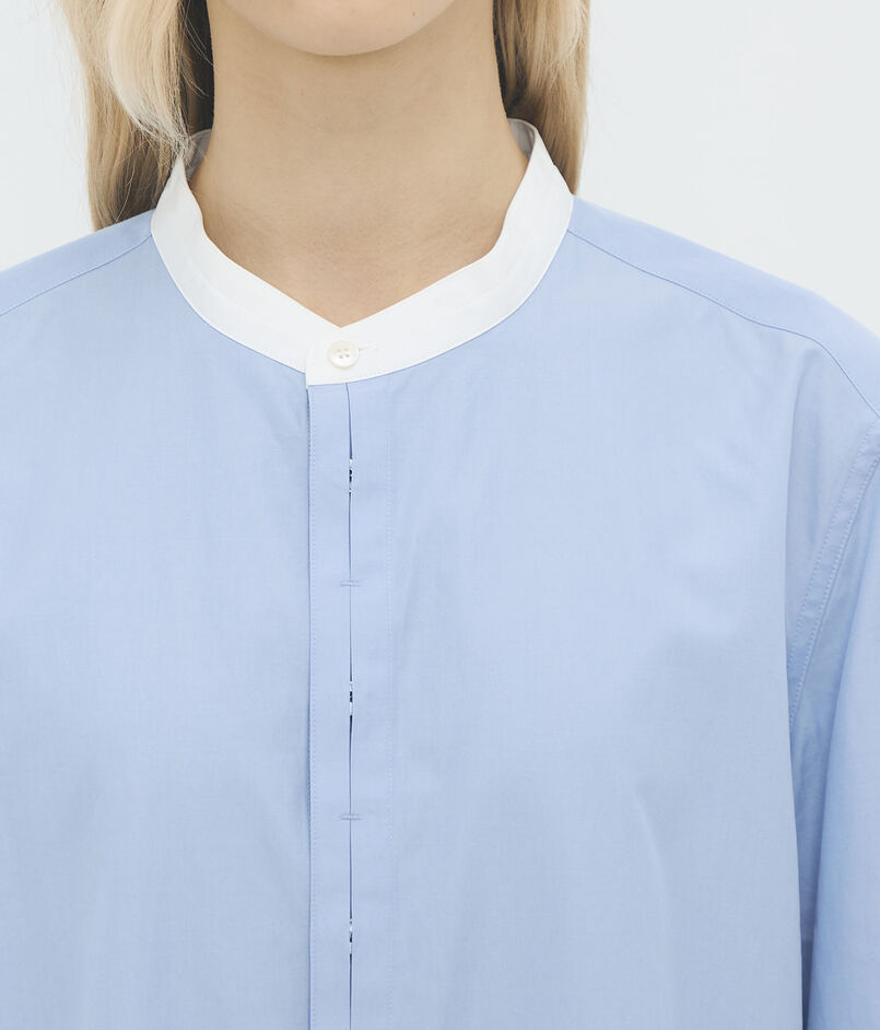 シンプルなシルエットに小技が入ったバンドカラーシャツ。