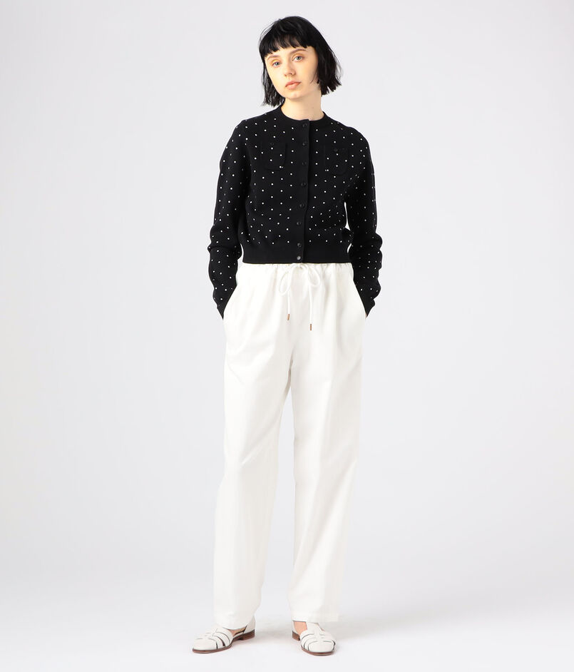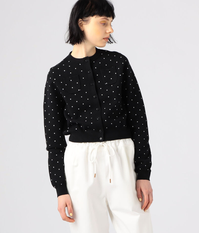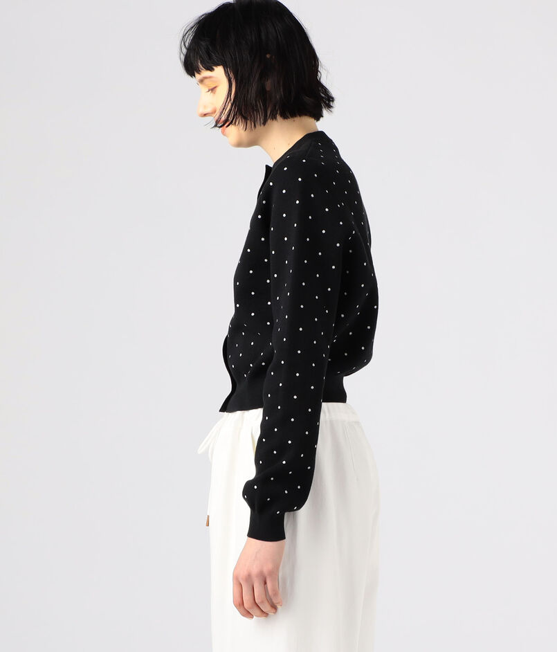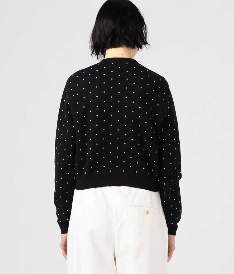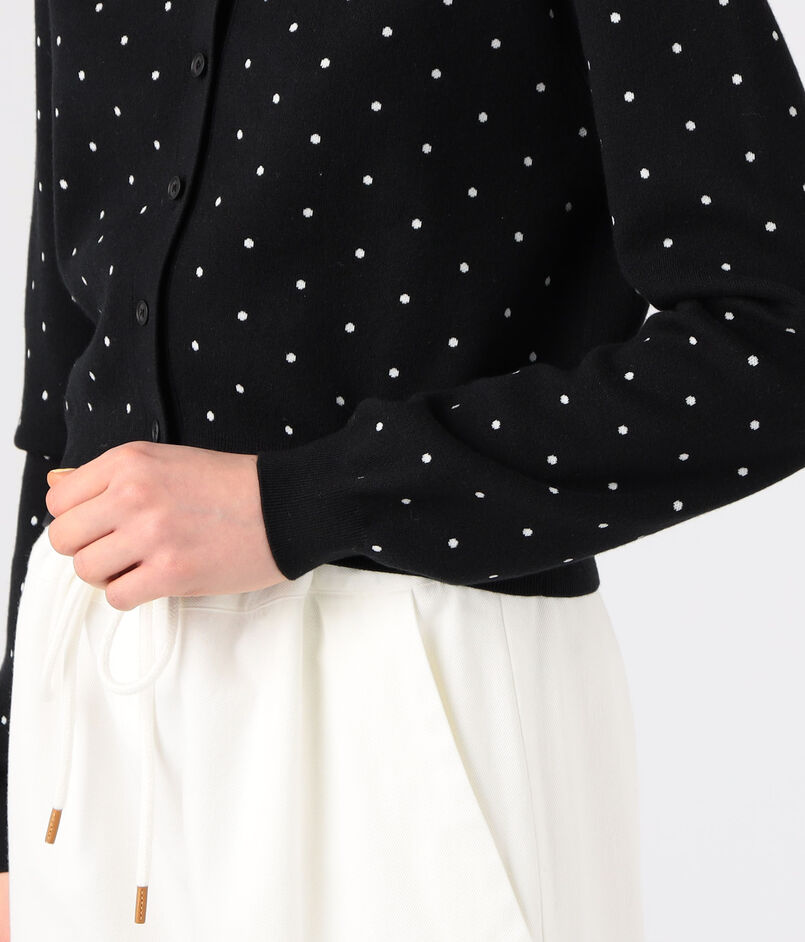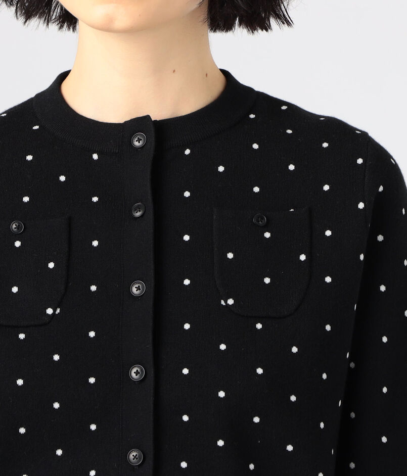 コットンカシミヤ ドットジャカードクルーネックカーディガン