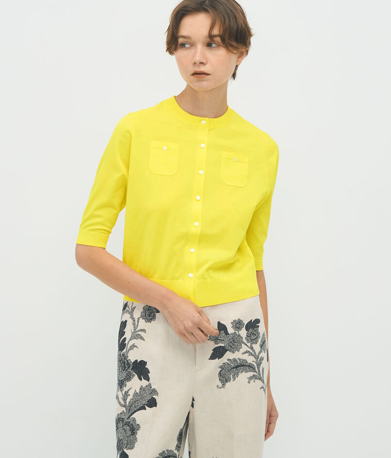 〈CABaN〉定番人気のポケットカーディガンを初夏から晩夏まで活躍する五分袖タイプにしました。