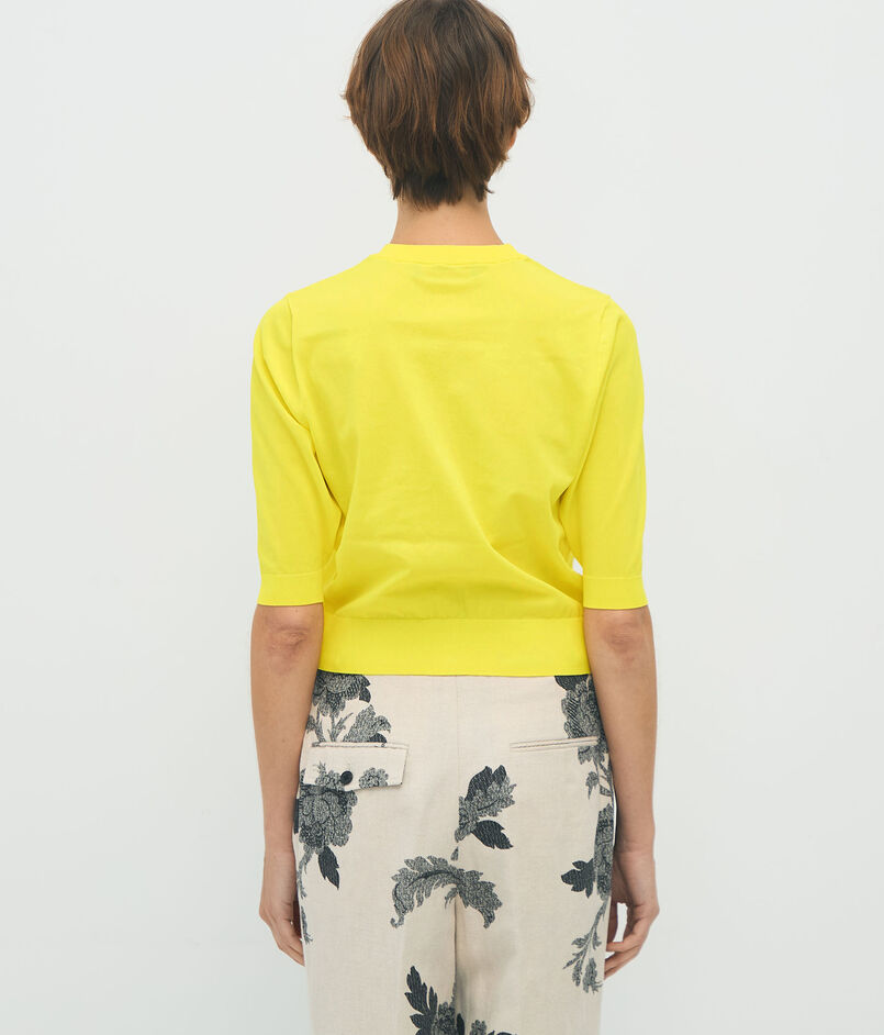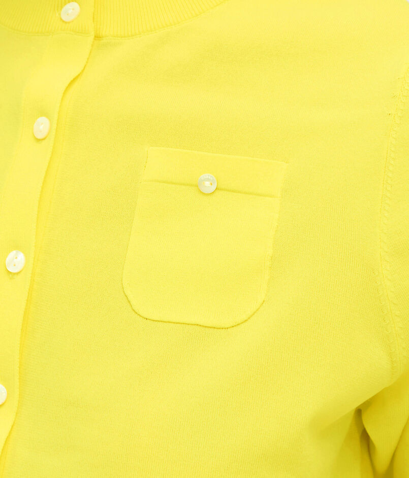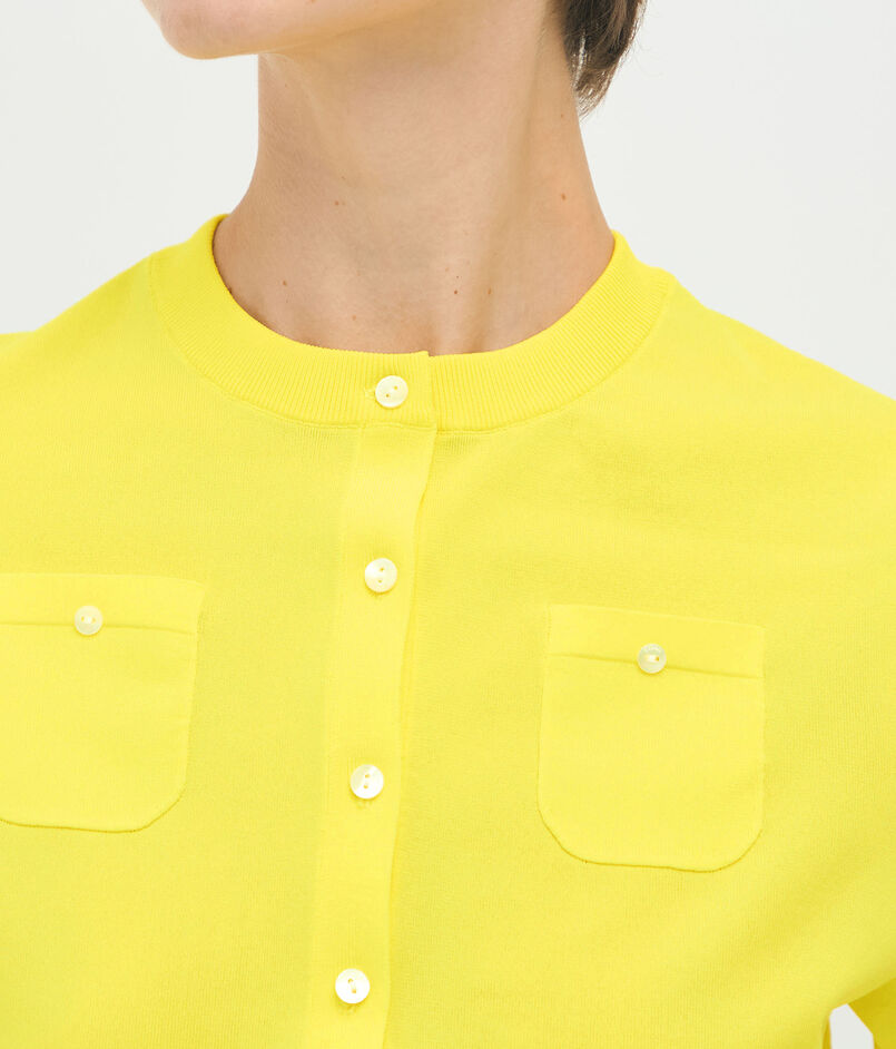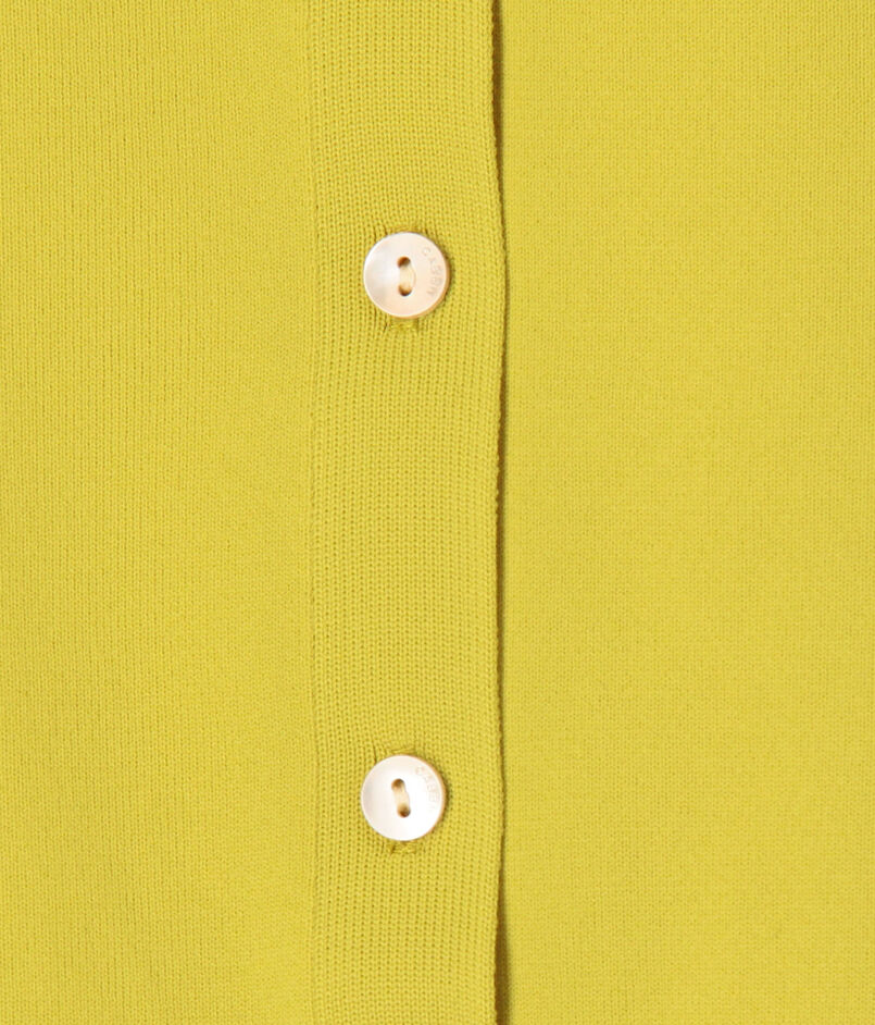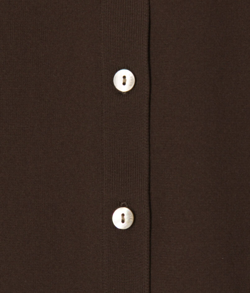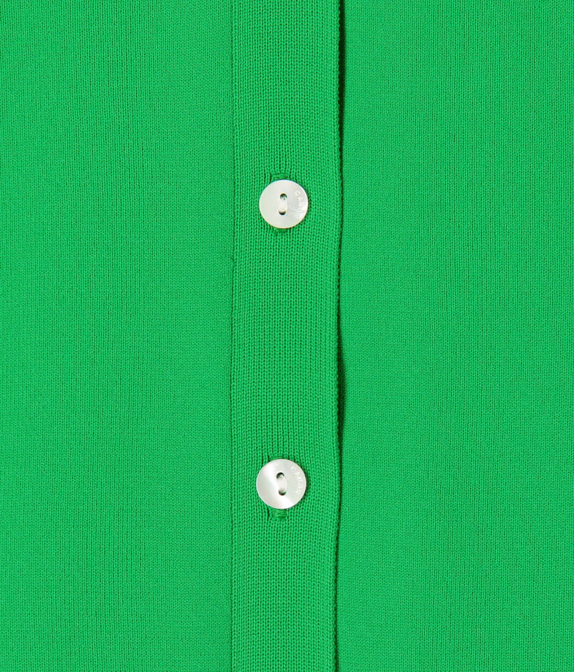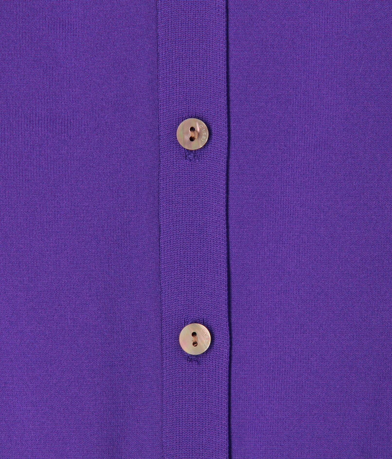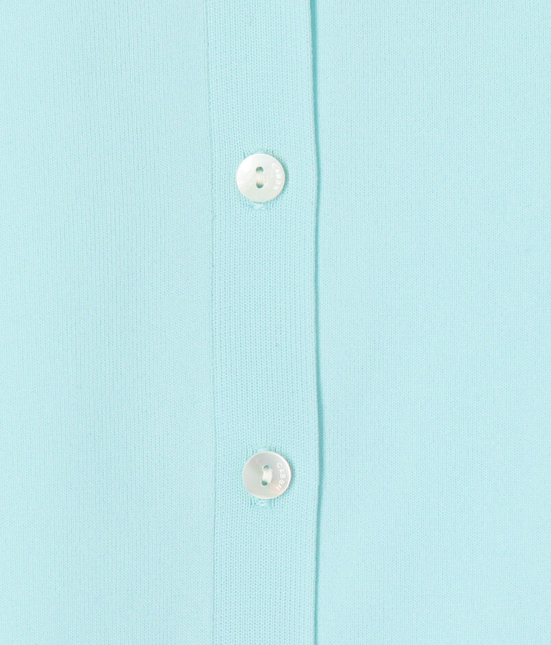 速乾性、伸縮性、軽量感の優れたポリエステルを使用し、薄く柔らかく編み上げたカーディガン。