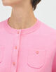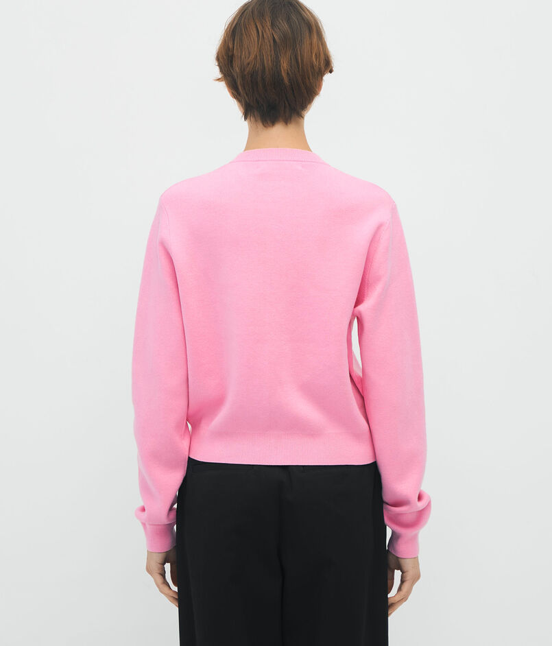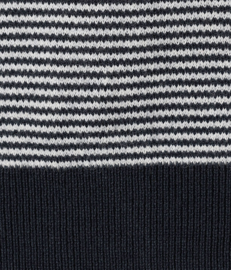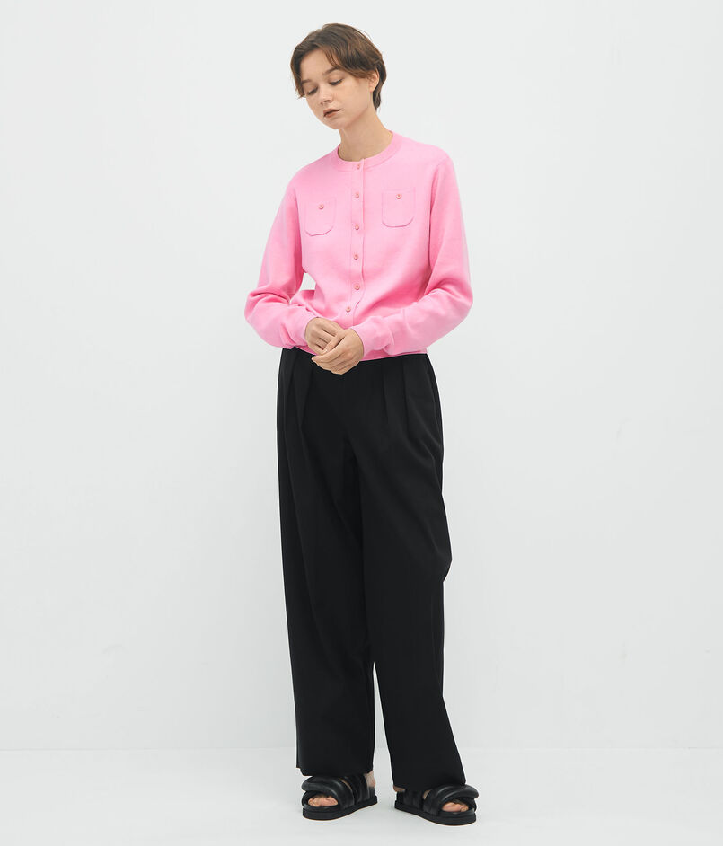 二重組織ならではのしっかりとした生地感と、スムース編み・カシミヤブレンドならではのソフトな肌触りが特徴。