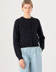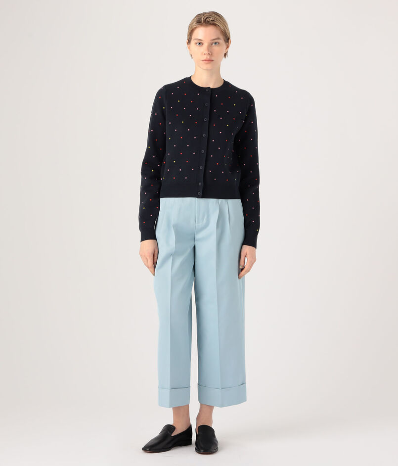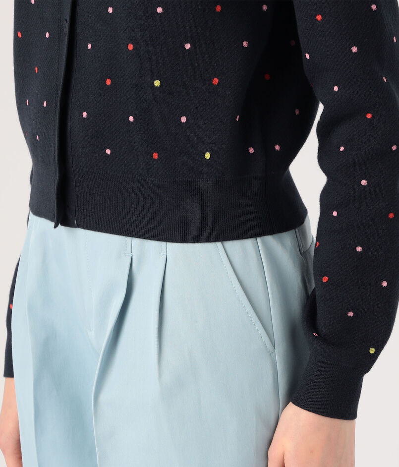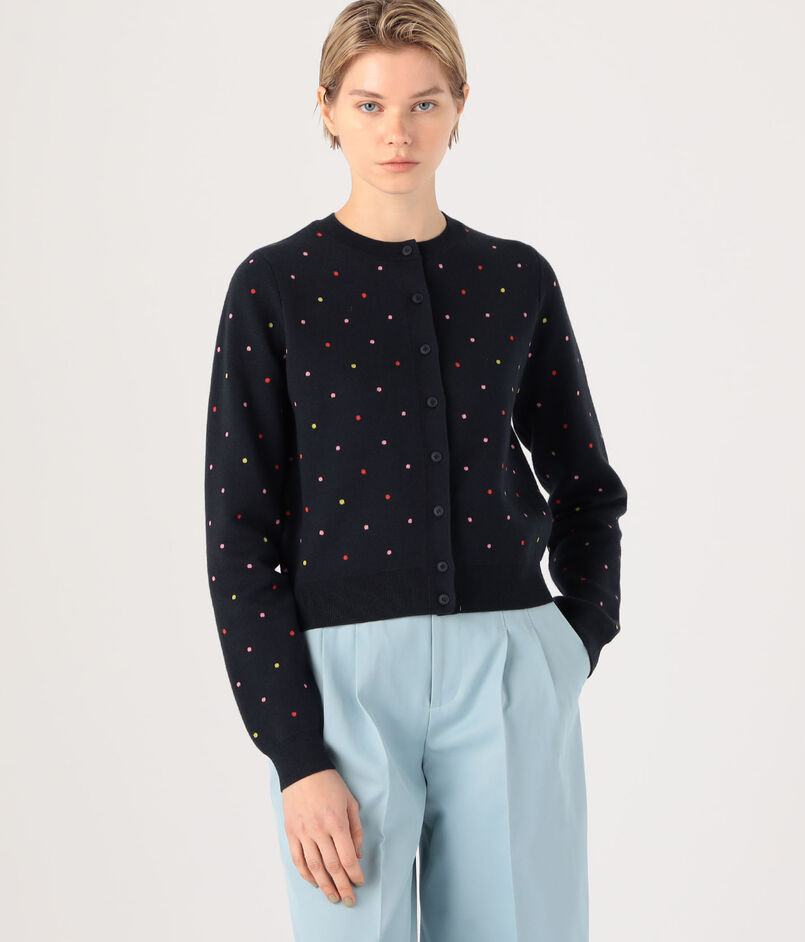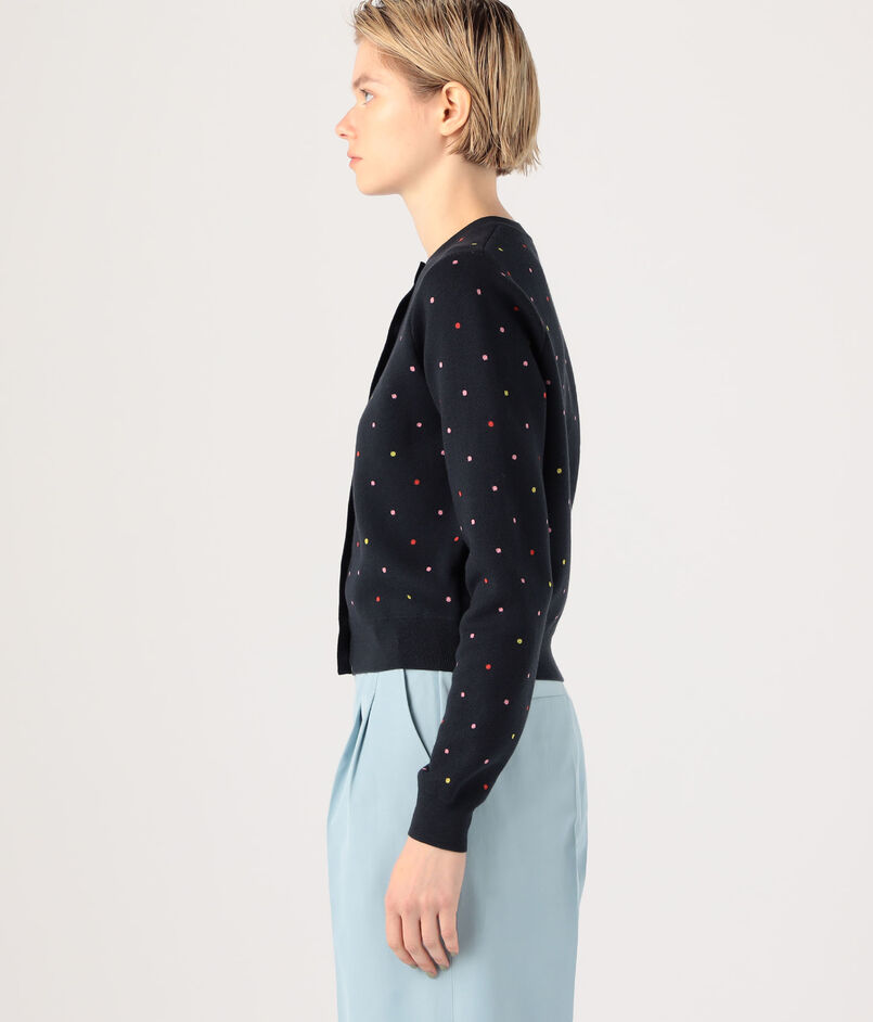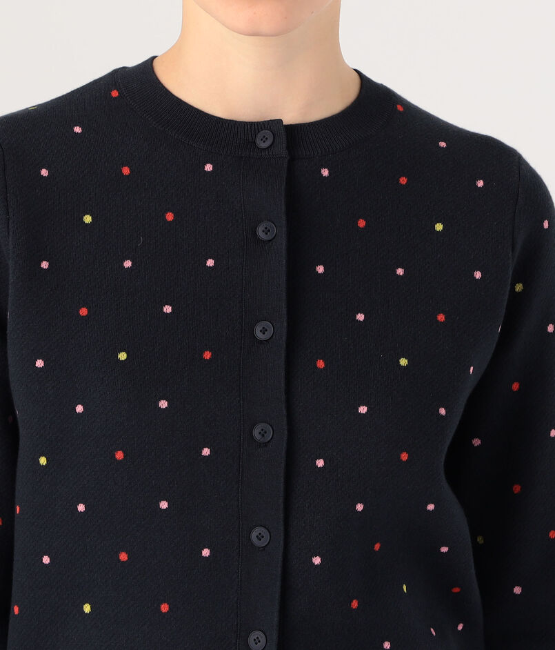 ■コットンカシミヤ ドットジャカード クルーネックカーディガン