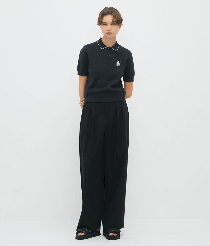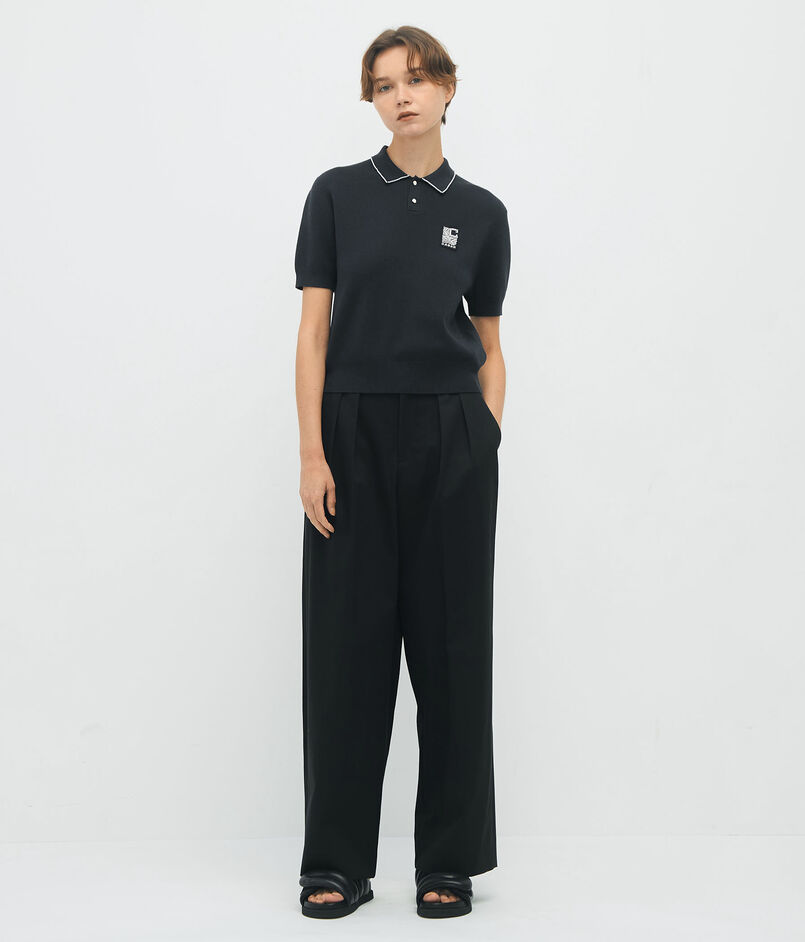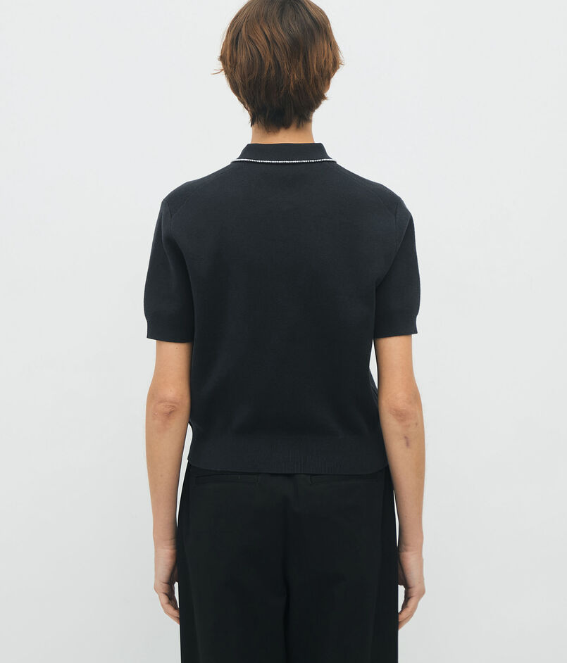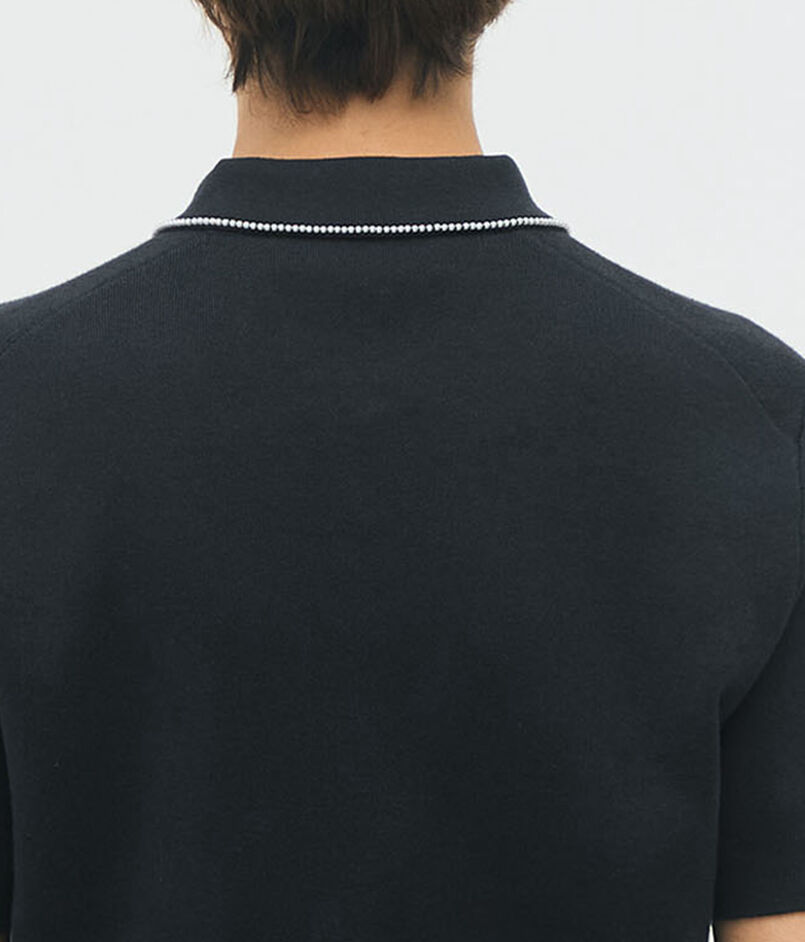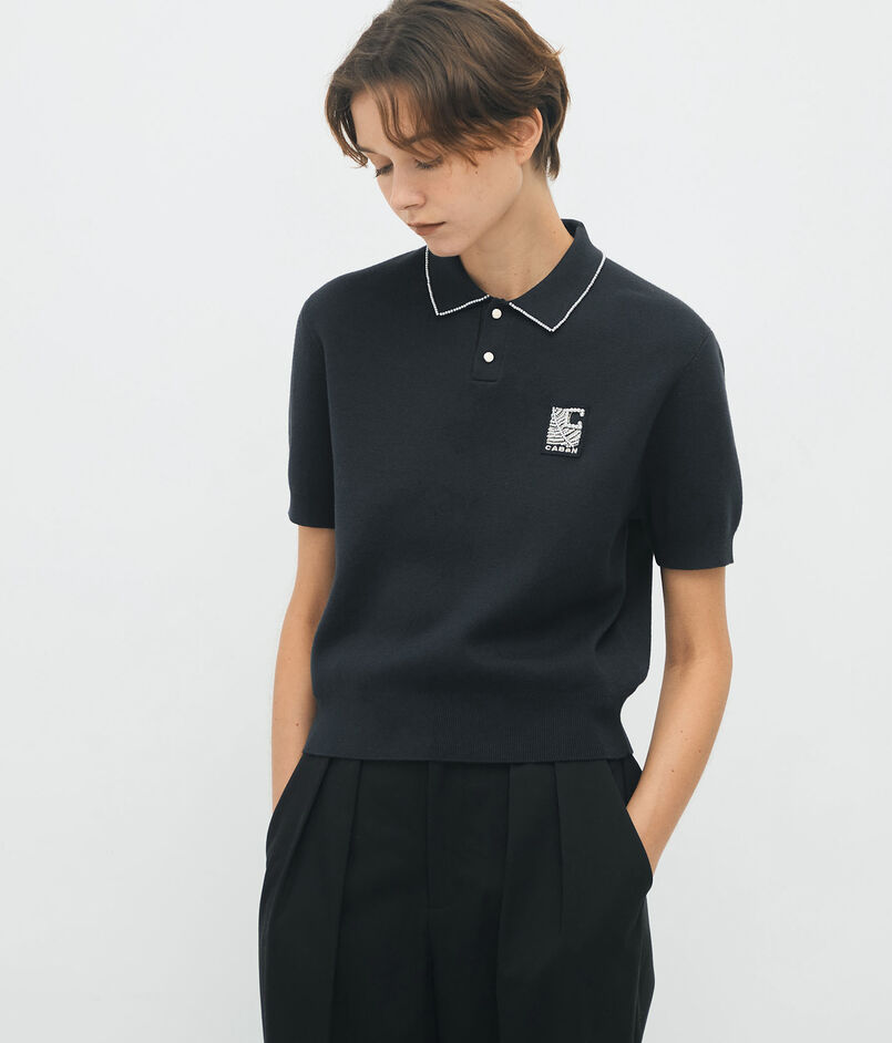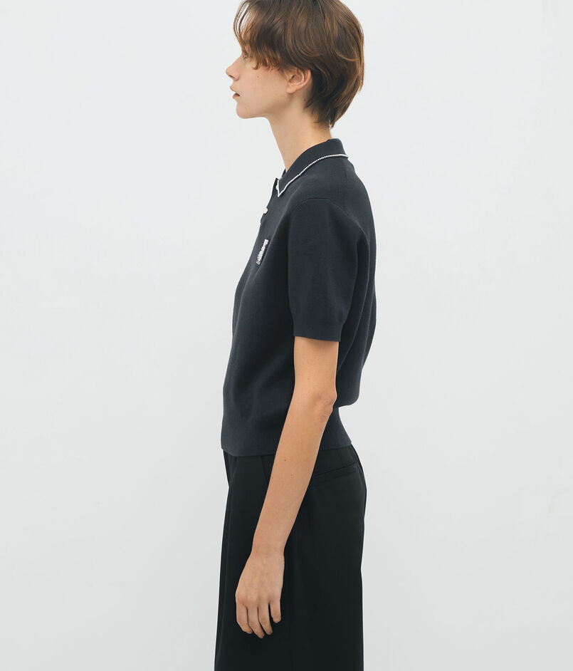 コンパクトなシルエットの半袖ポロニットプルオーバー。