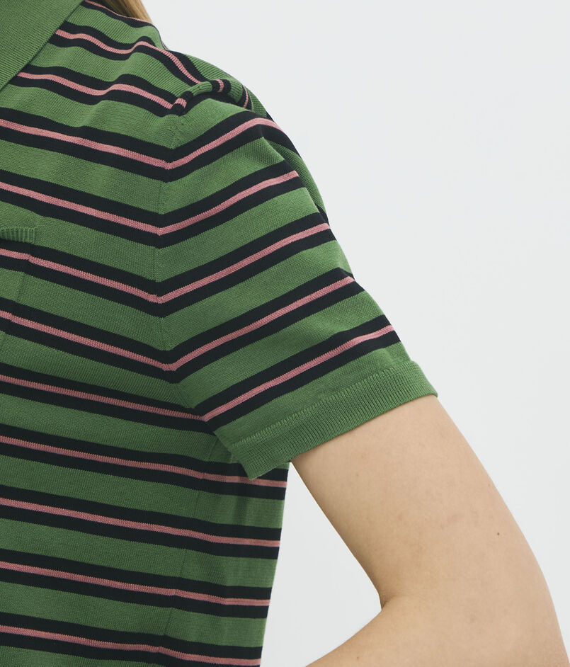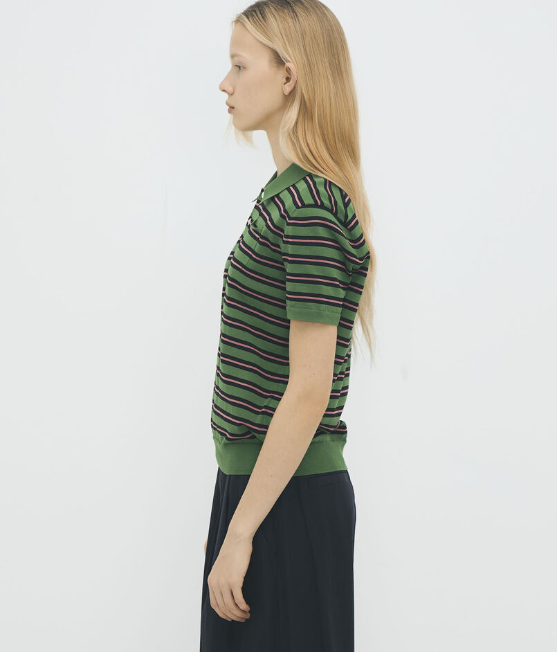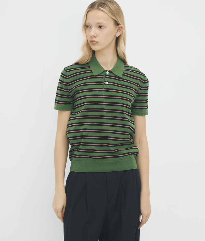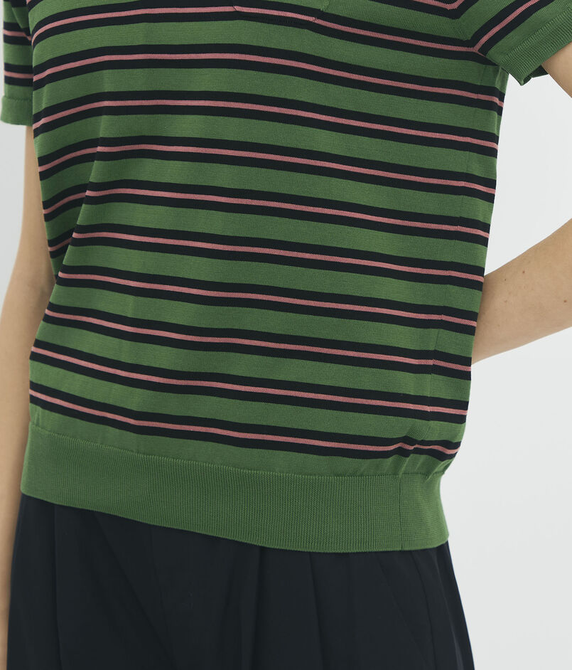 ブランドオリジナルの染織糸を配置したストライプは、シンプルになりがちな夏の装いにアクセントをプラスしてくれます。
