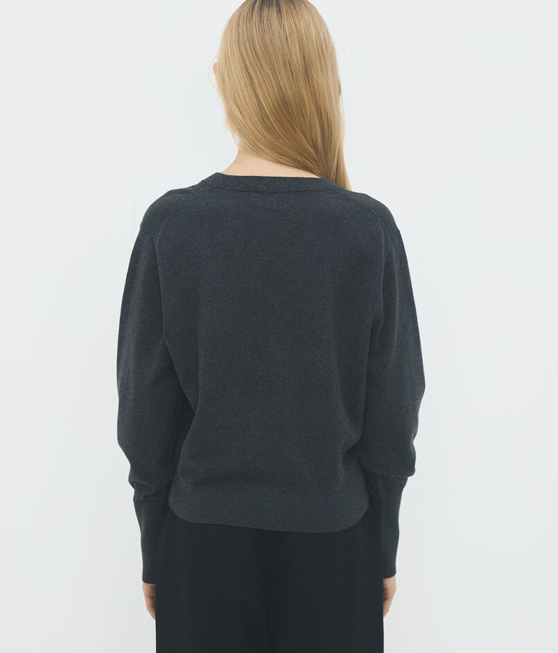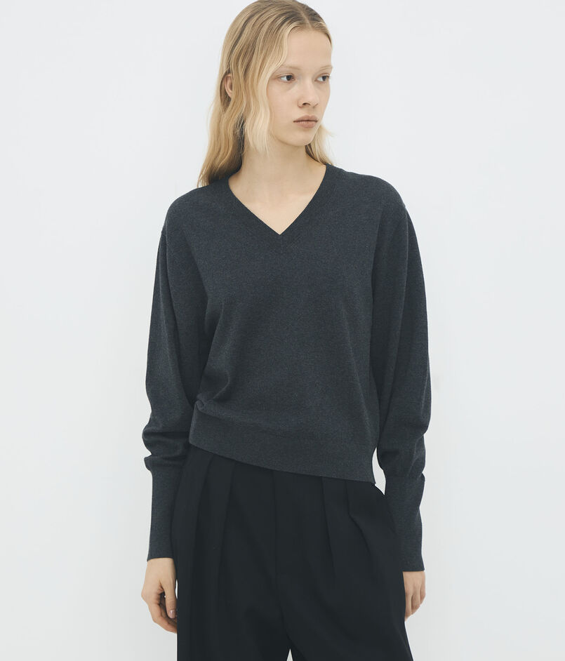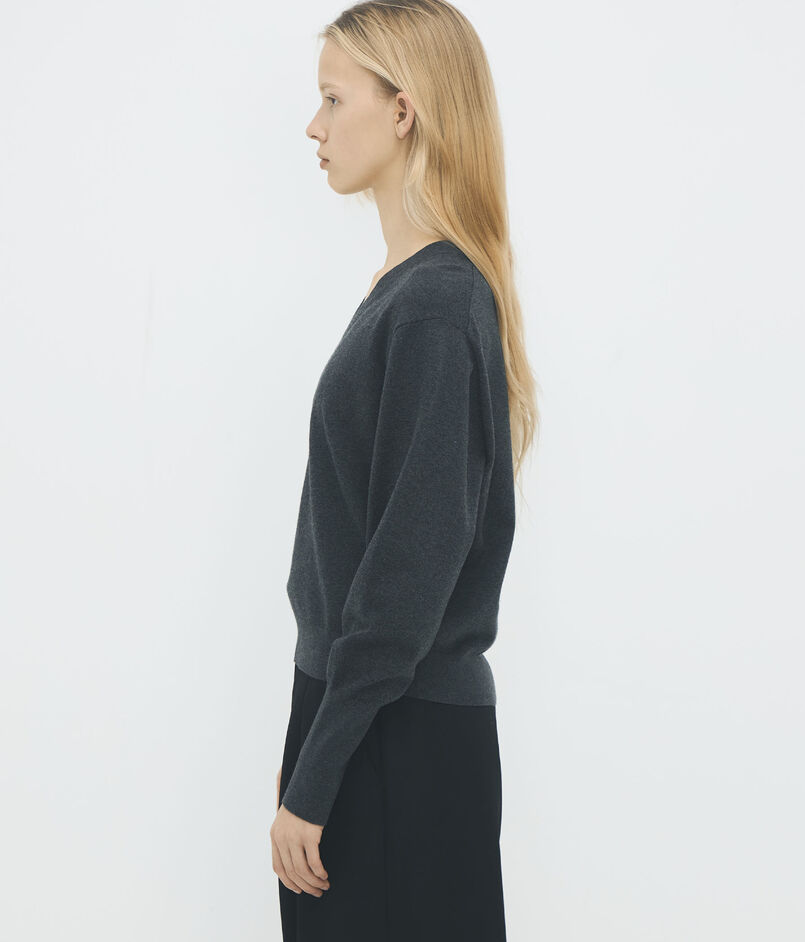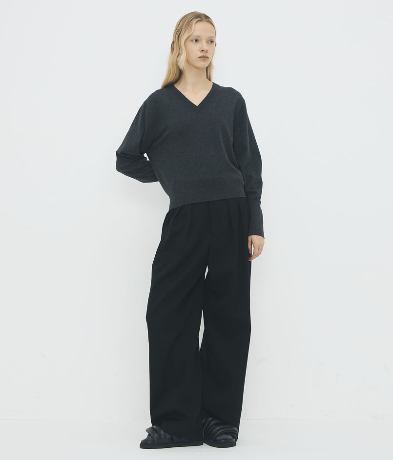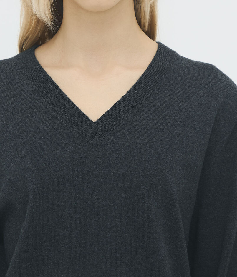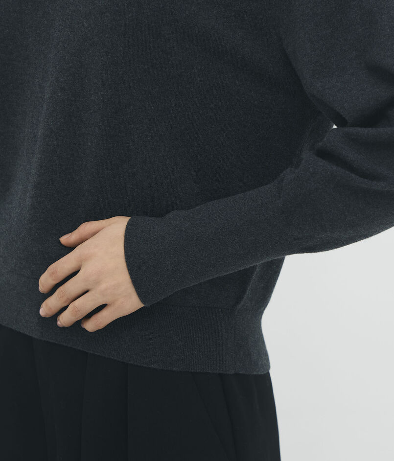 ジゴスリーブのVネックプルオーバーは、浅めのネックラインが首まわりをすっきりと見せてくれます。