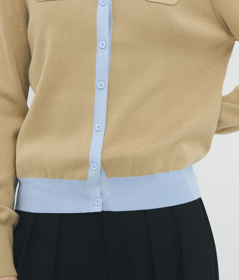 定番のポケットカーディガンをエレガントかつトラッドな雰囲気にアレンジしました。