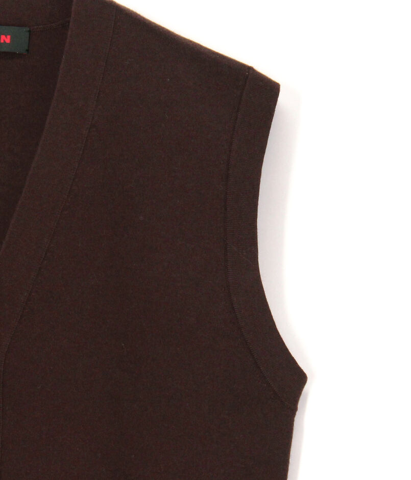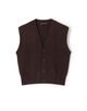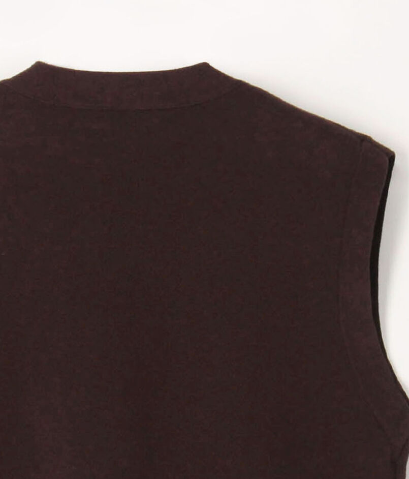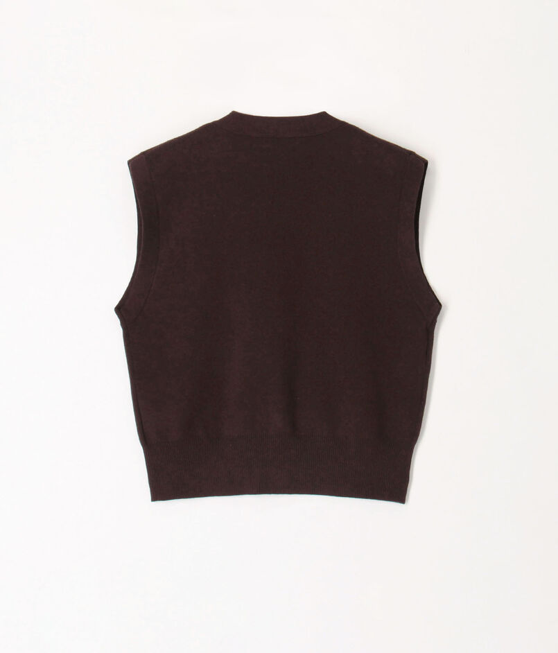 コンパクトな着丈のVネックベストは、肩を覆うようなドロップショルダーなのでTシャツやシャツなどとのレイヤードスタイルはもちろん、一枚で着るのもおすすめです。