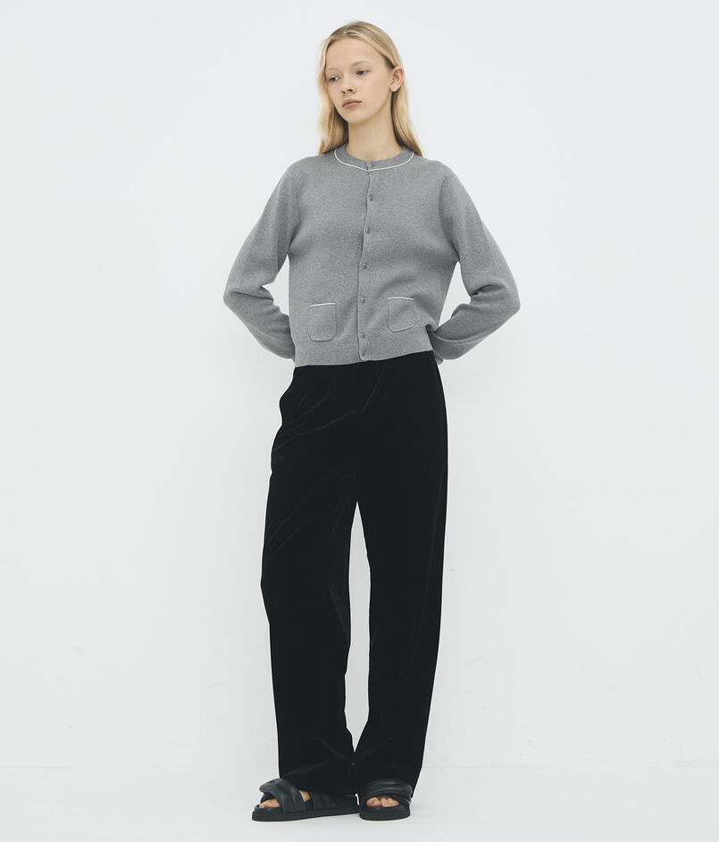 カシミヤブレンドのソフトで膨らみのある細番手の糸を使用し、あたたかみがありきめ細やかで滑らかな質感に仕上げました。