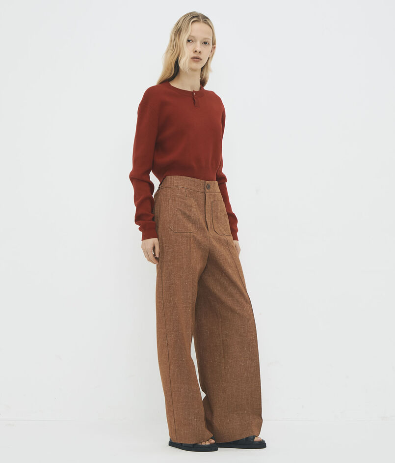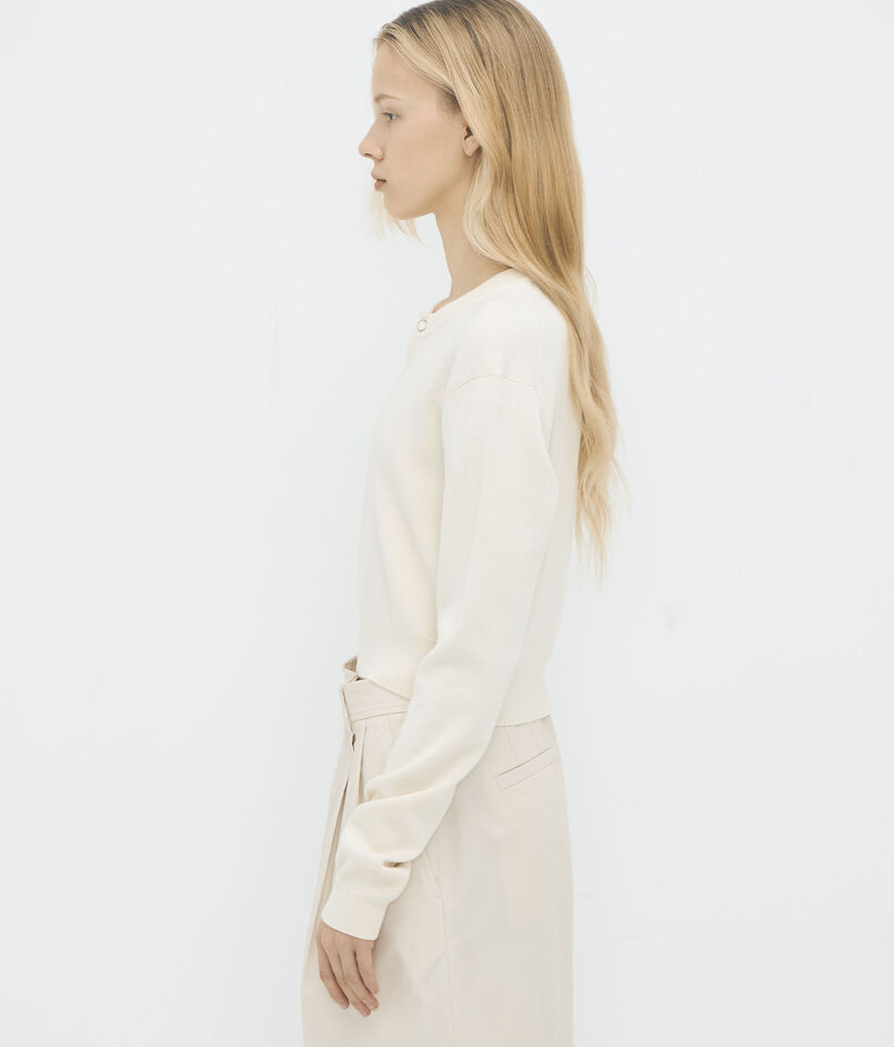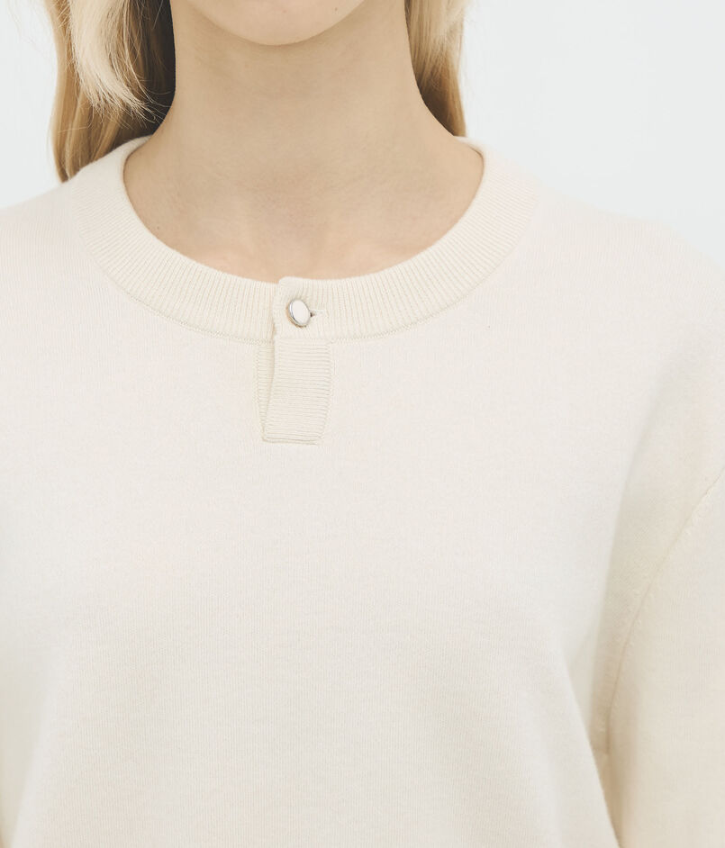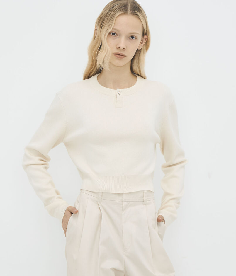 クロップド丈のコンパクトなシルエットに、1つボタンのヘンリーネックがポイントのプルオーバー。