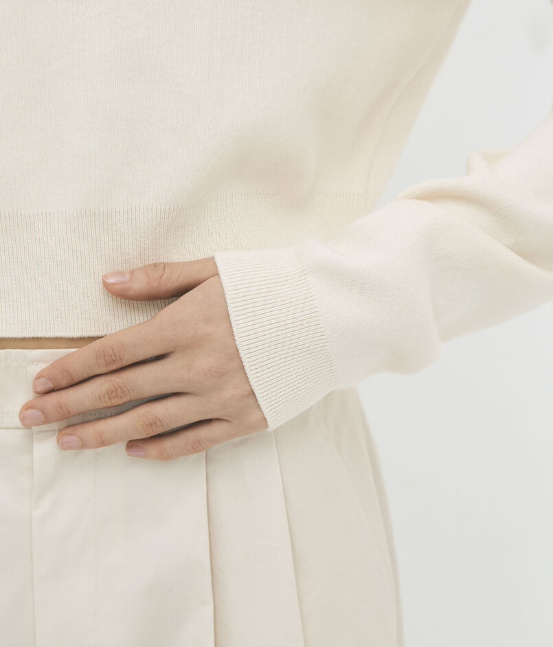 コットンカシミヤ ヘンリーネッククロップドプルーバー