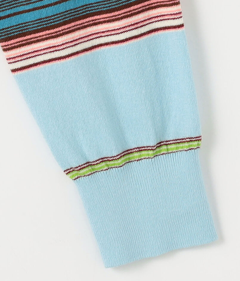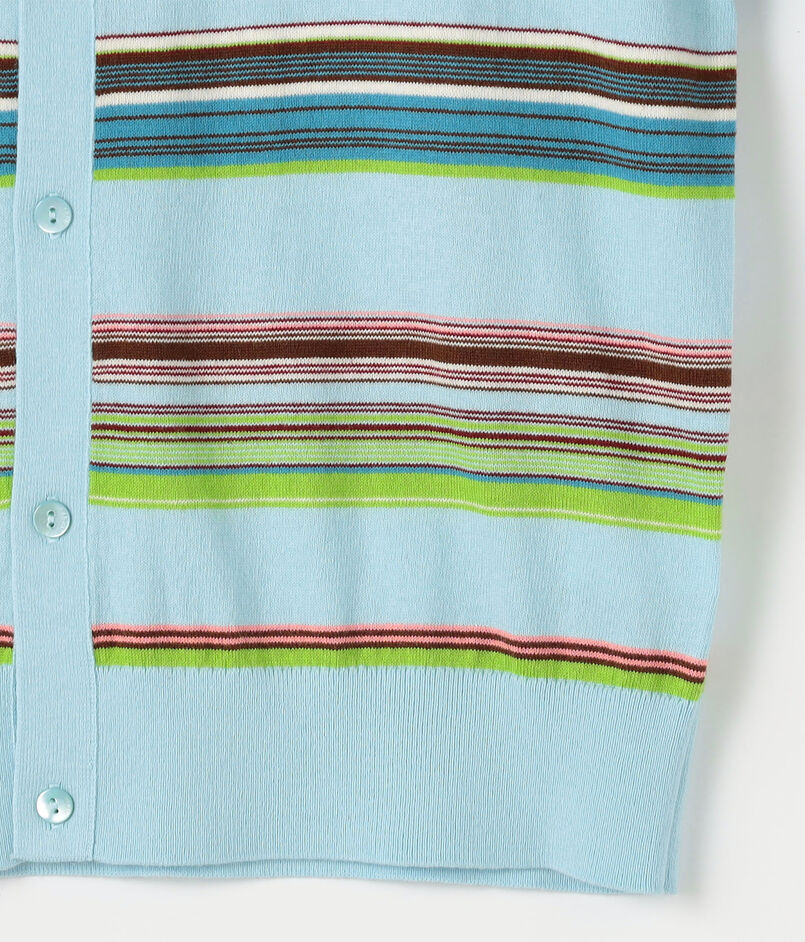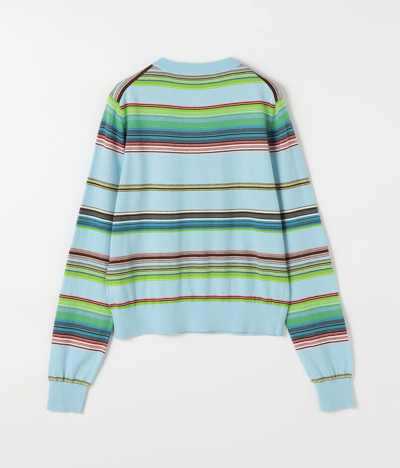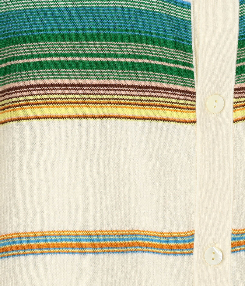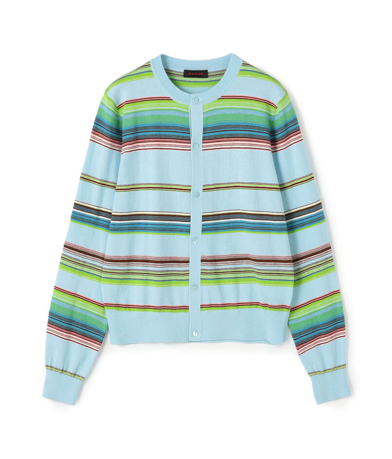 ブランド定番型のカーディガンは全面に入ったマルチボーダー柄が印象的なアイテム。