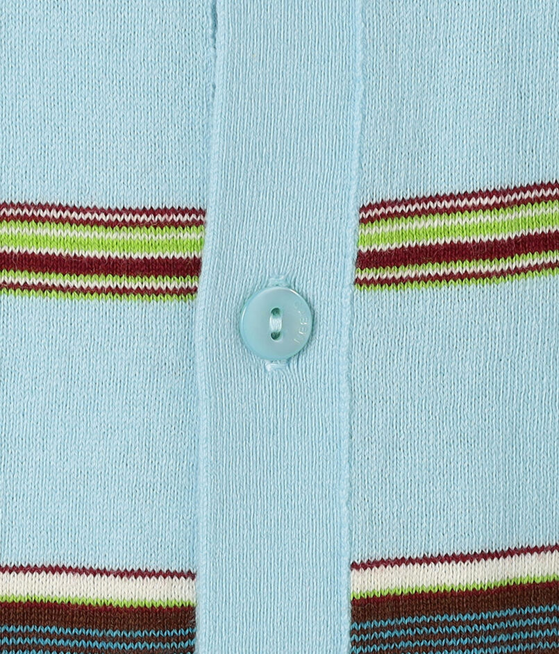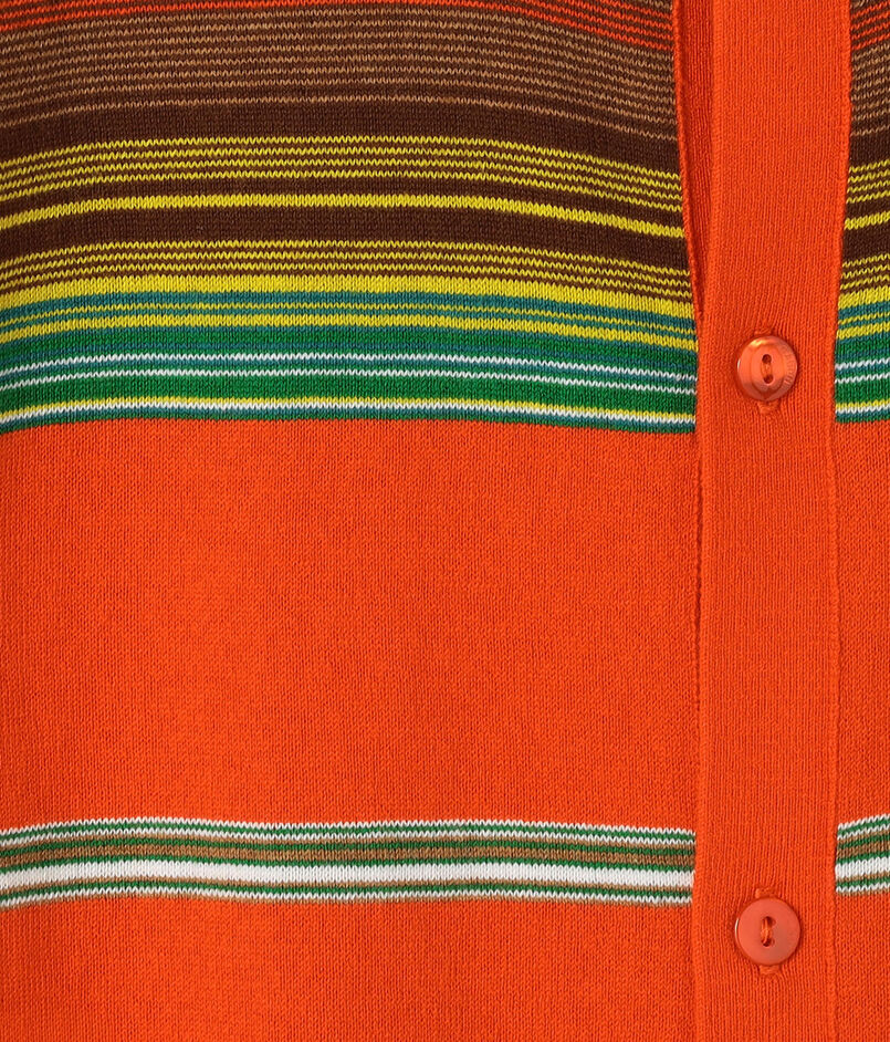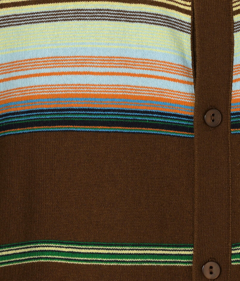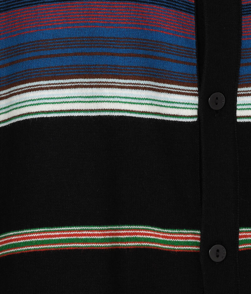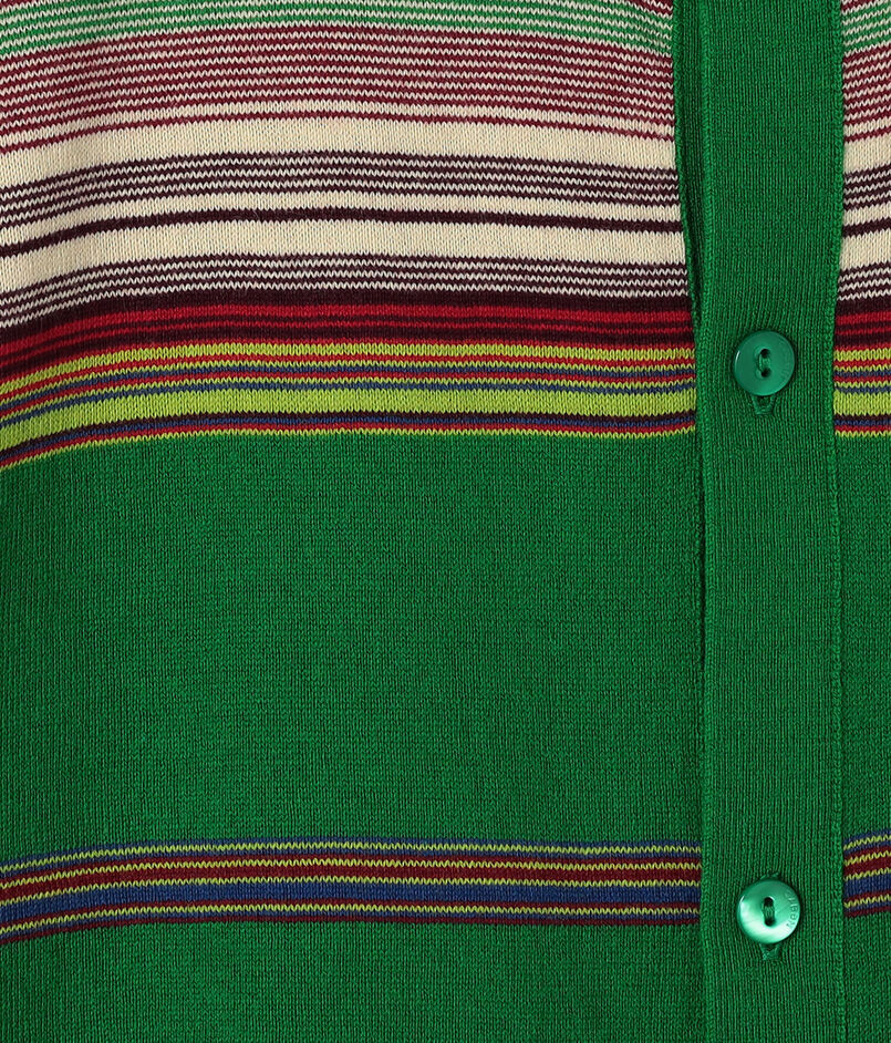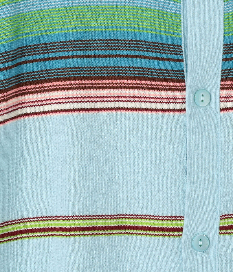 ブランド定番型のカーディガンは全面に入ったマルチボーダー柄が印象的なアイテム。