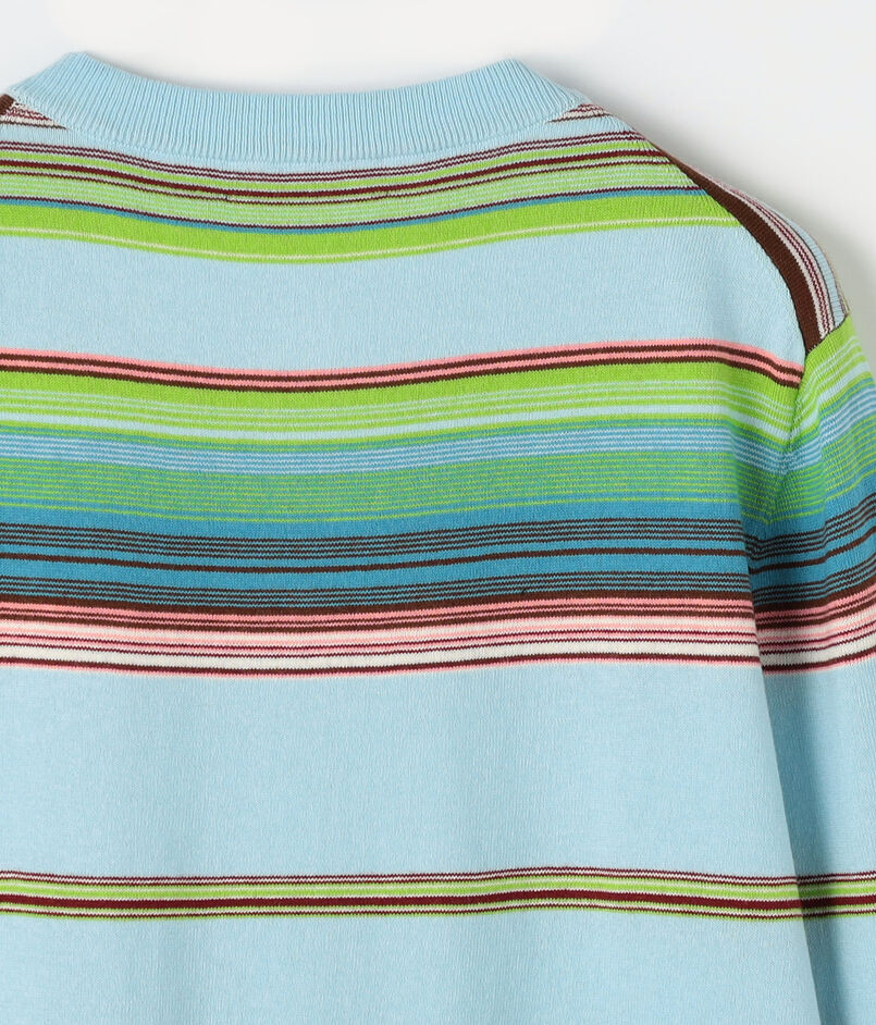 コットンカシミヤの細番手糸を使用し、天竺編みで仕上げたマルチボーダーニット。