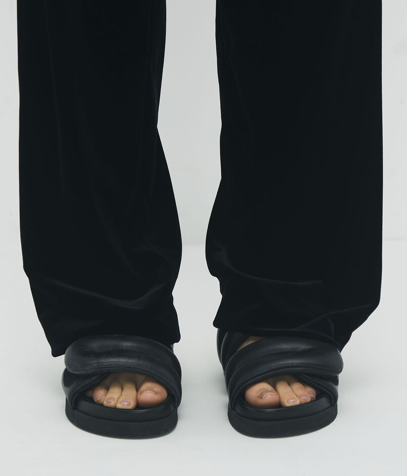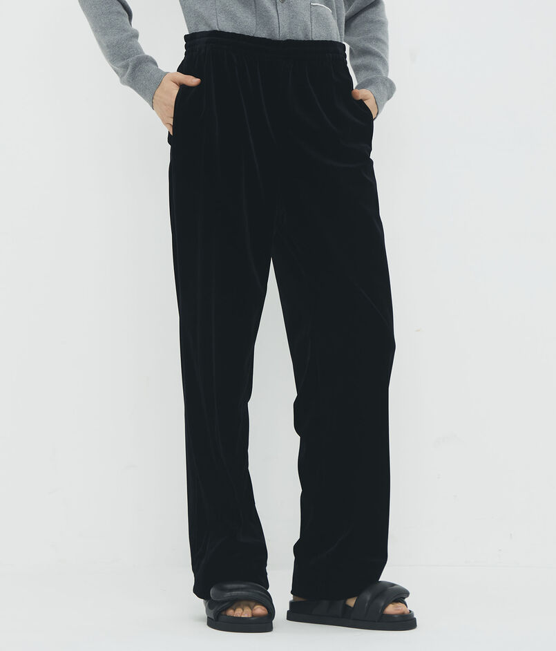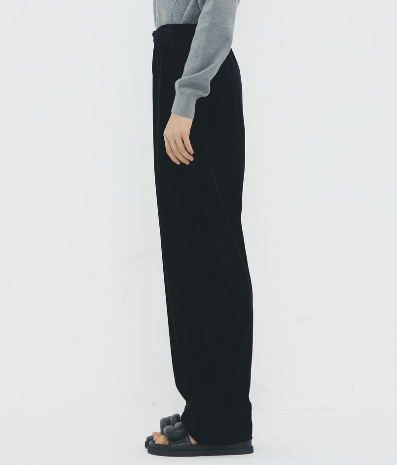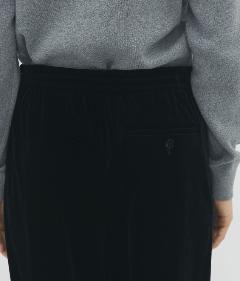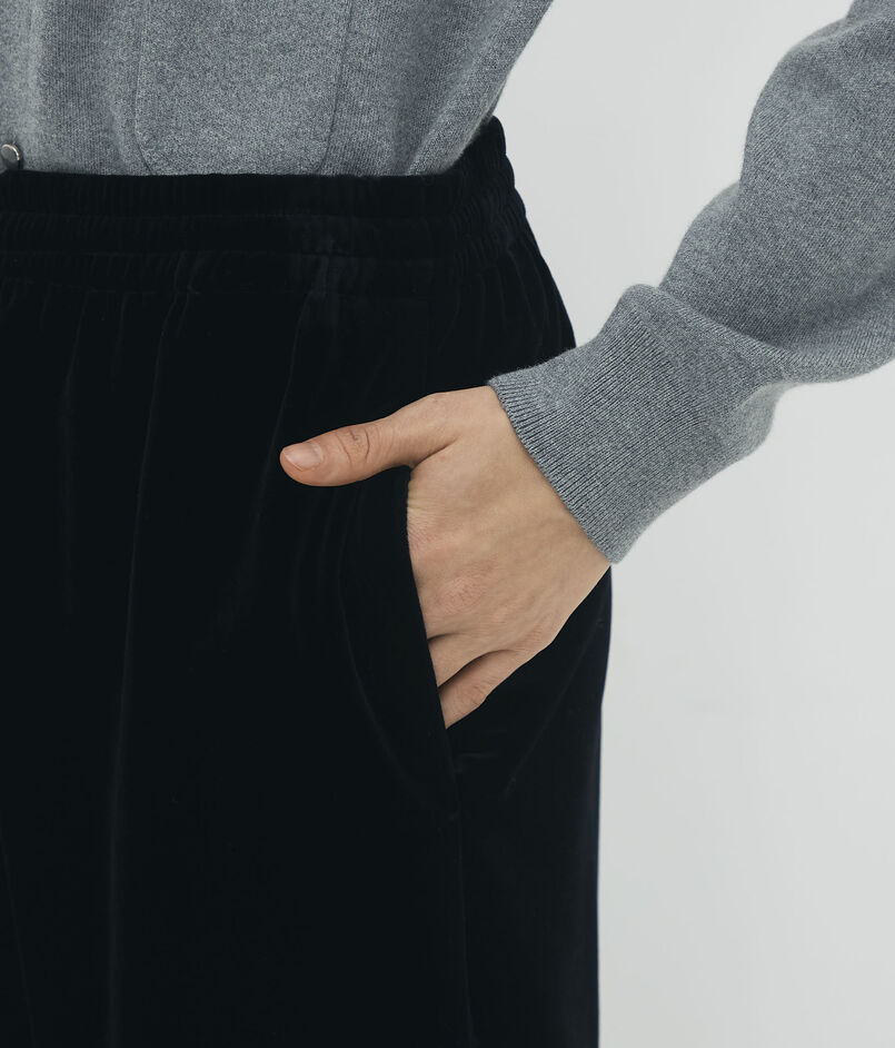 滑らかな毛羽立ちと上品な光沢が特徴のベロア素材を使用したイージーパンツ。