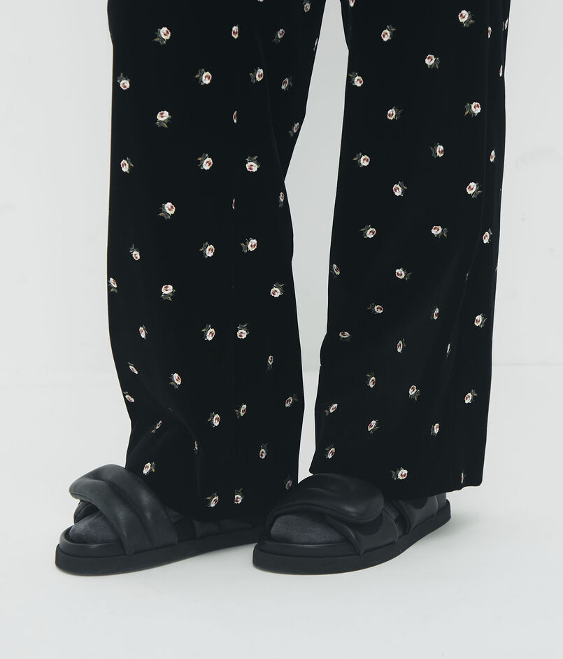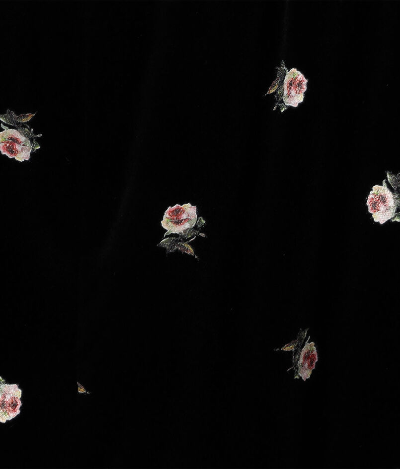 上質で柔らかなイタリアらしい風合いのコットンベルベットに小さなローズがプリントされた生地です。