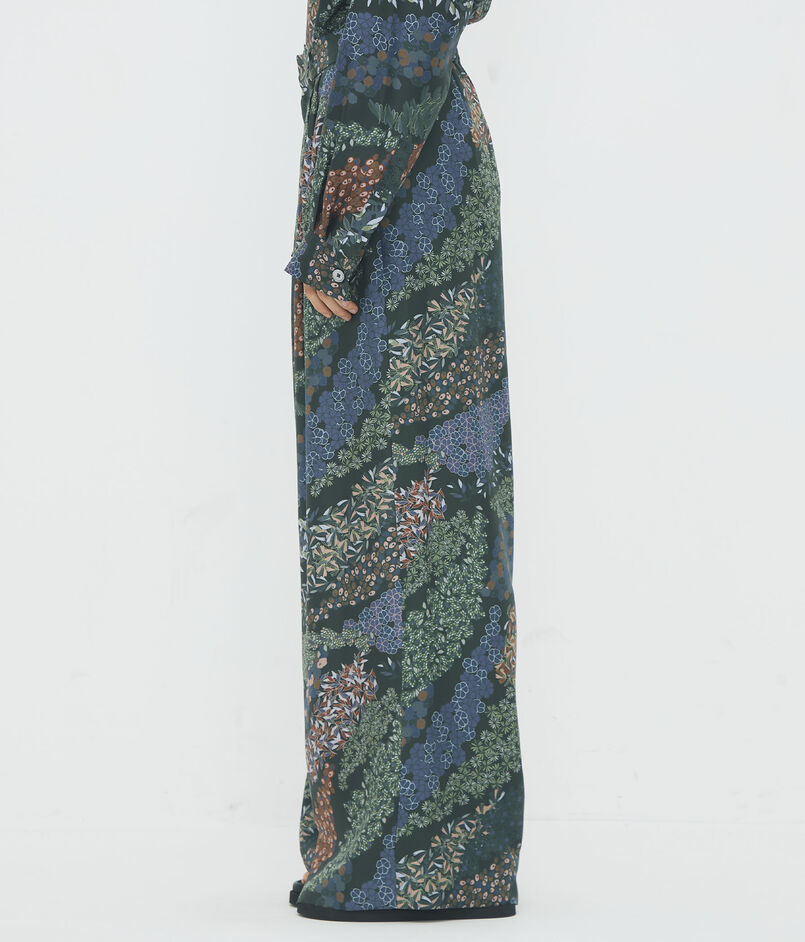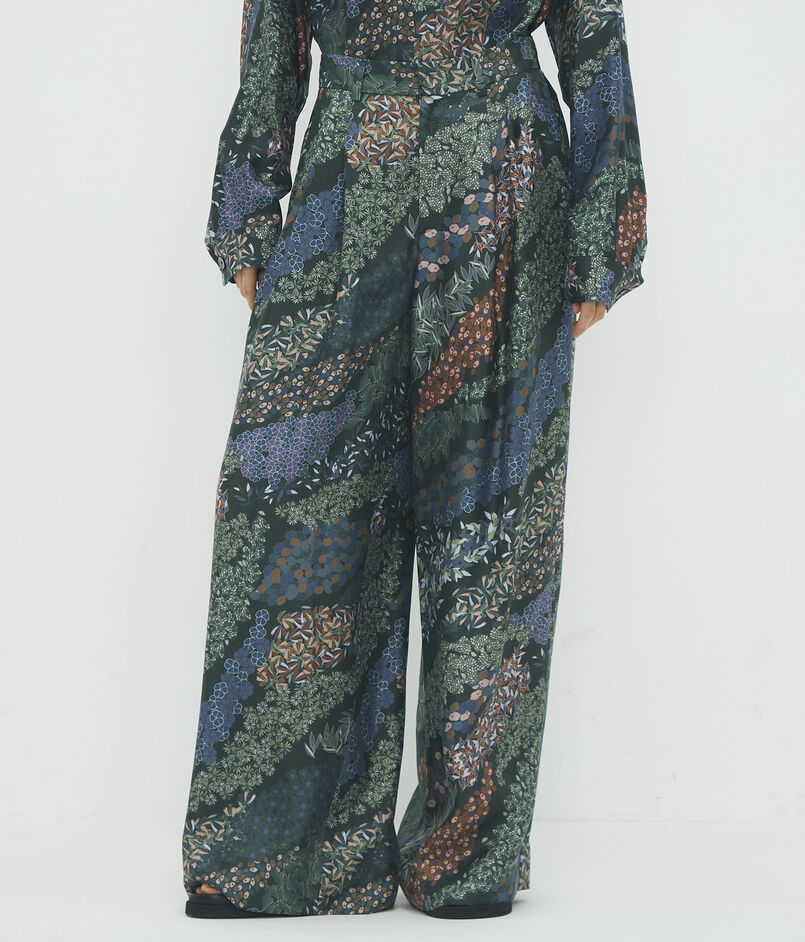シルクツイル FLOWER RIVERプリント 2タックワイドパンツ