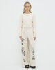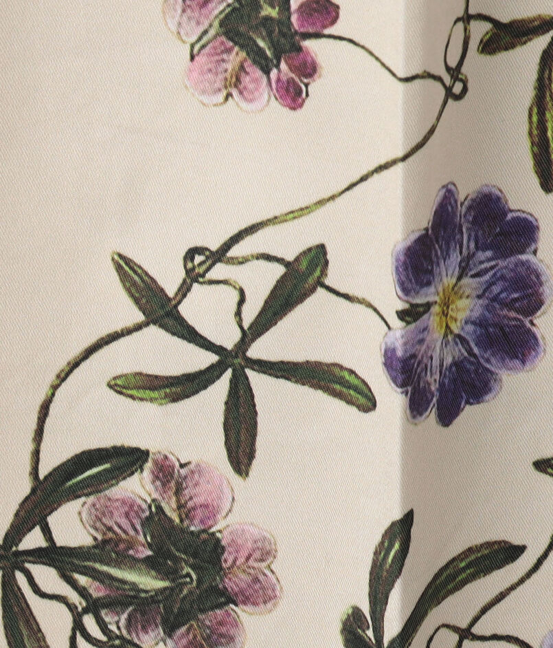 大胆に配置されたフラワープリントが目を惹くデザインが魅力です。