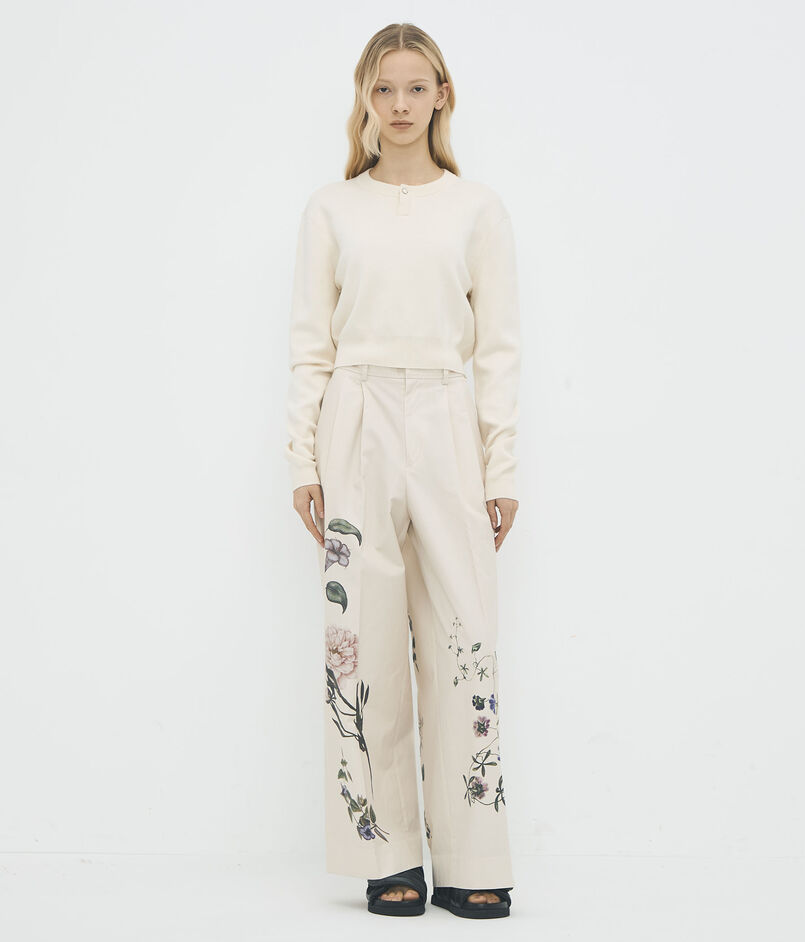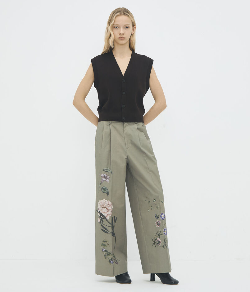 ウエストに2タックが入ったワイドシルエットのパンツ。