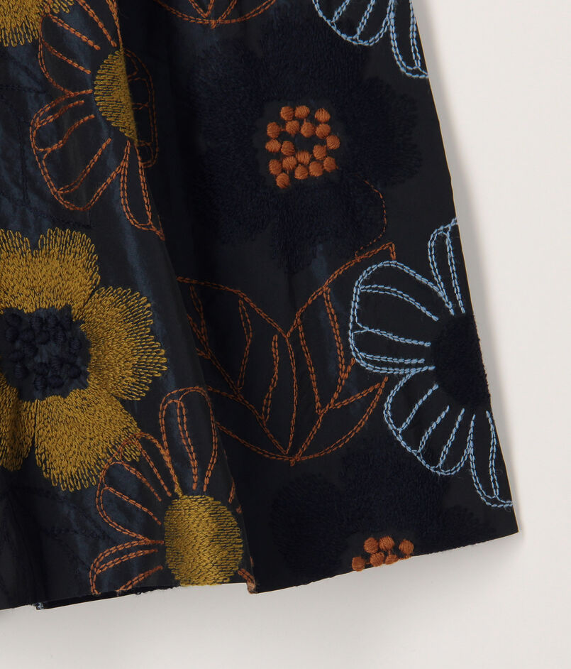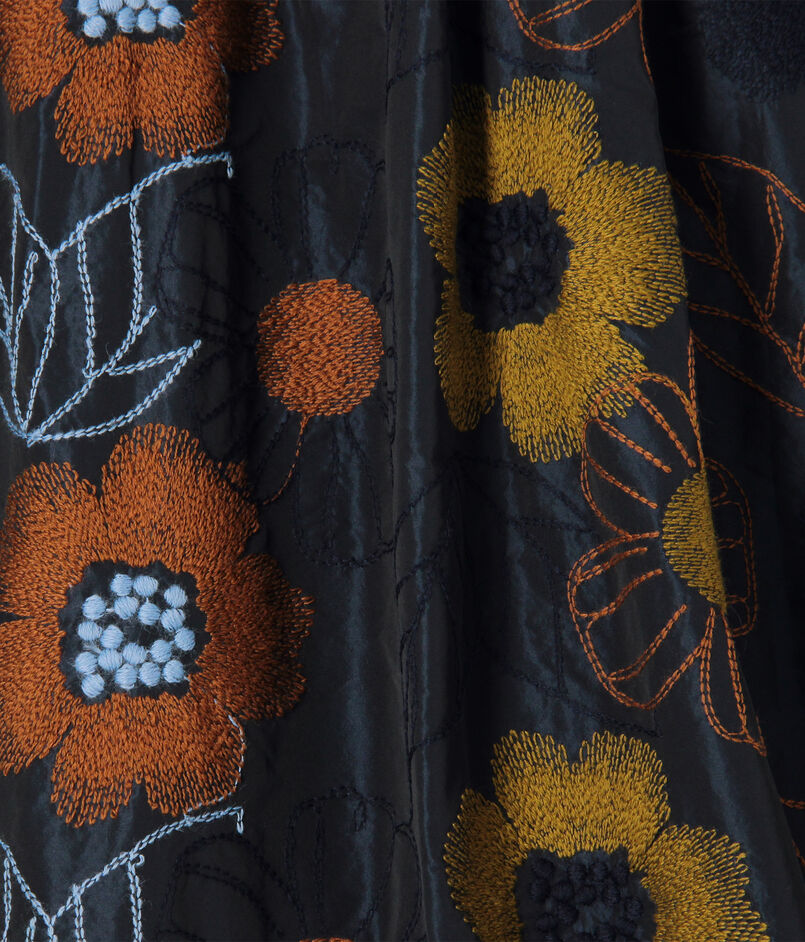 薄手のタフタに太番手のウールミックス糸で大胆なフラワーが刺繍されています。