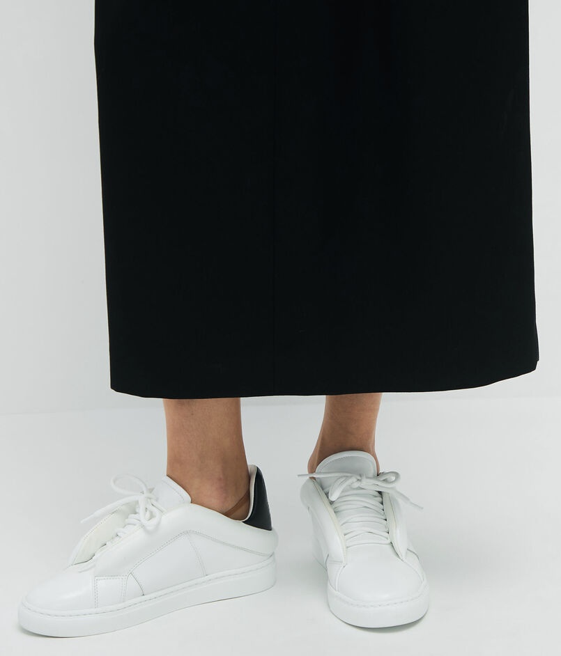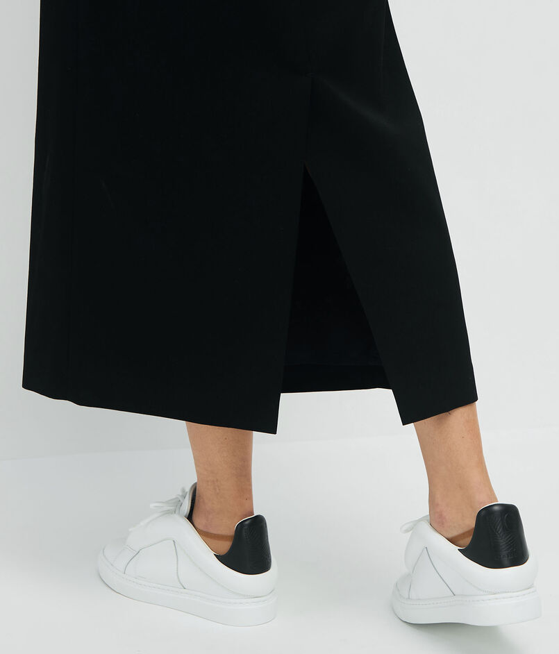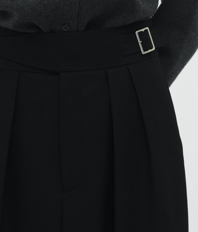フロントは2タックでボリュームを出しつつ、ヒップまわりはコンパクトなサイズ感なのですっきと着ていただけます。