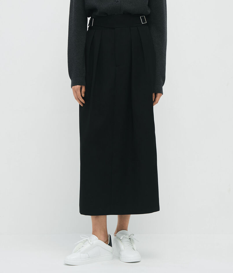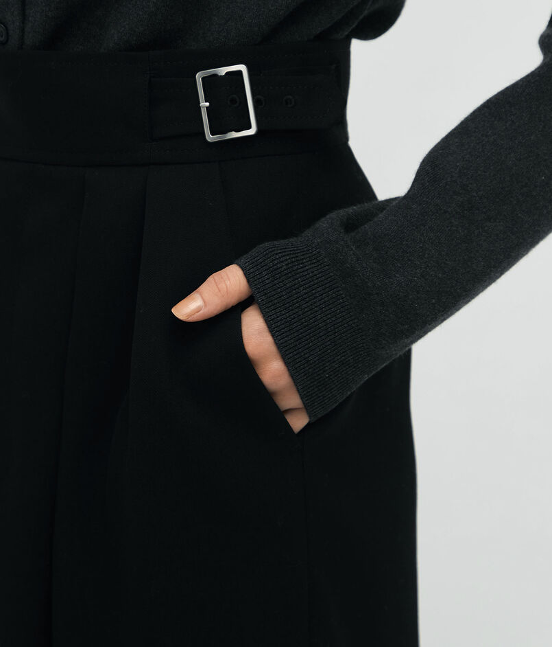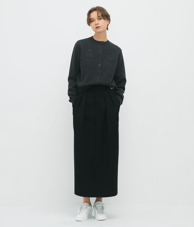 グルカパンツのマニッシュなディテールをスカートに落とし込んだデザインが新鮮なスカート。