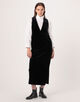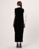 深いVネックラインとサイドスリットが特徴のスリーブレスドレス。