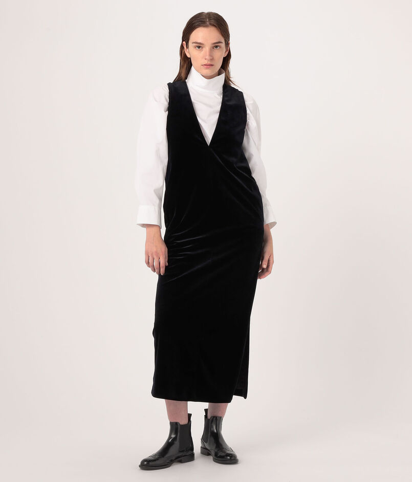 滑らかな毛羽立ちと上品な光沢が特徴のベロア素材を使用したワンピース。
