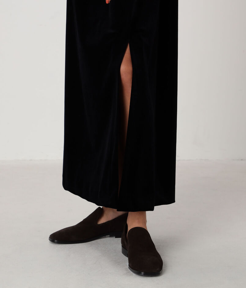 滑らかな毛羽立ちと上品な光沢が特徴のベロア素材を使用したワンピース。