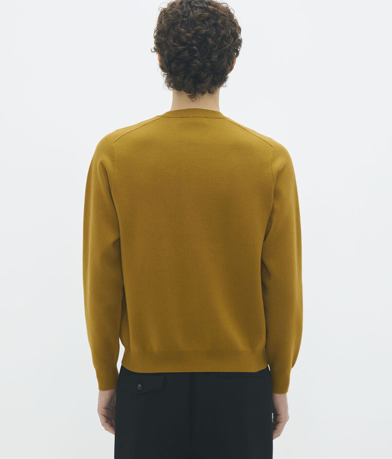 表にはカシミヤブレンドのソフトで膨らみのある細番手糸、裏は軽くすらっとした肌触りのポリエステル糸を使用したコットンカシミヤ素材。