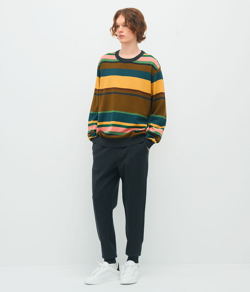 スエットアイテムをニット生地に置き換えたパンツに新色が登場。
