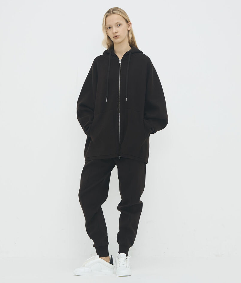 裾に少し膨らみをもたせても、伸ばしてすっきりとしても着ていただけるよう裾をリブで仕上げています。