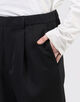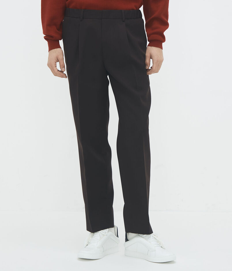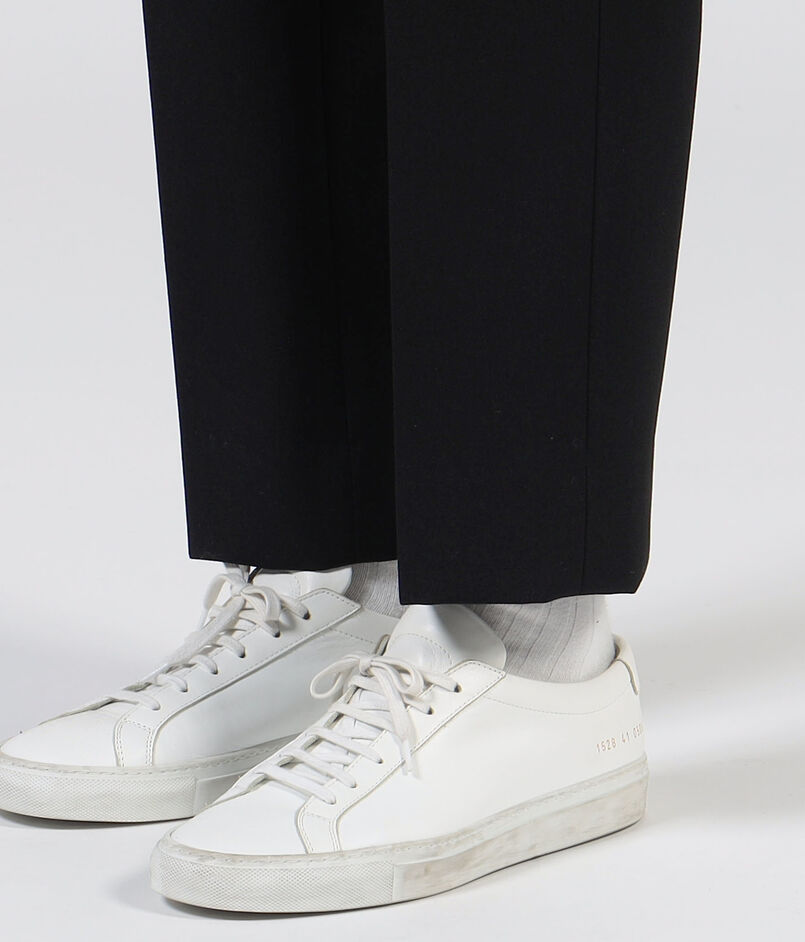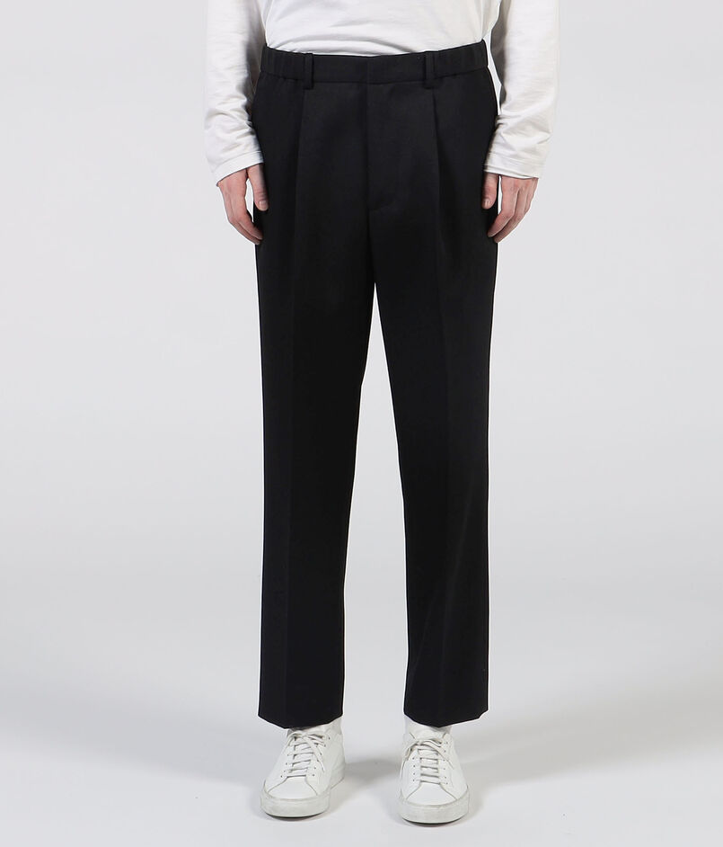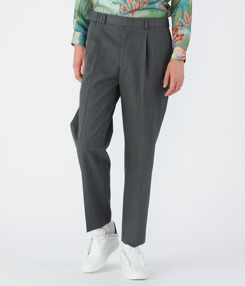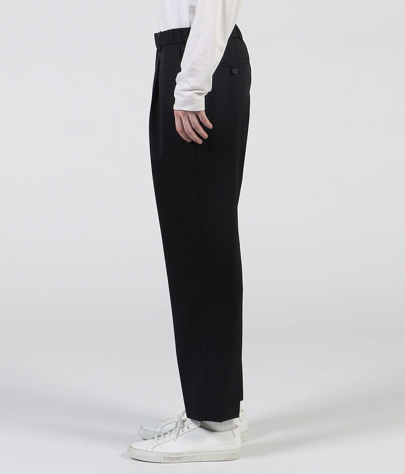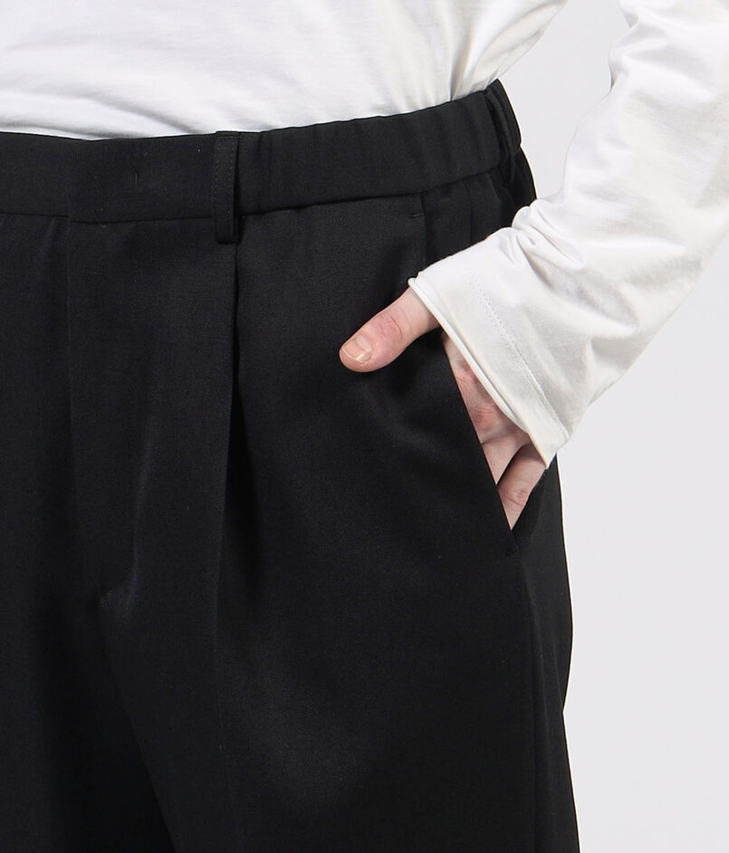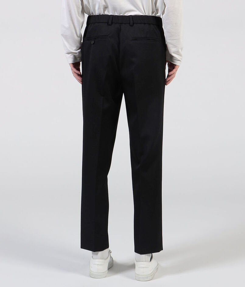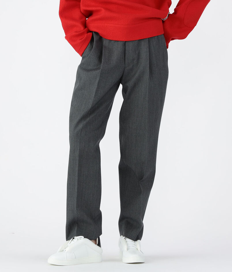 ヒップ・わたりにゆとりを持たせつつ、ややテーパードしたきれいなシルエットがポイントのパンツ。