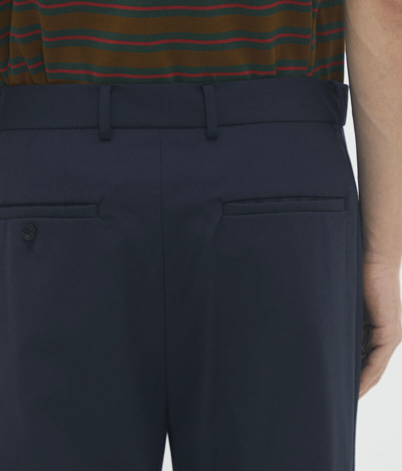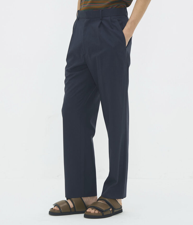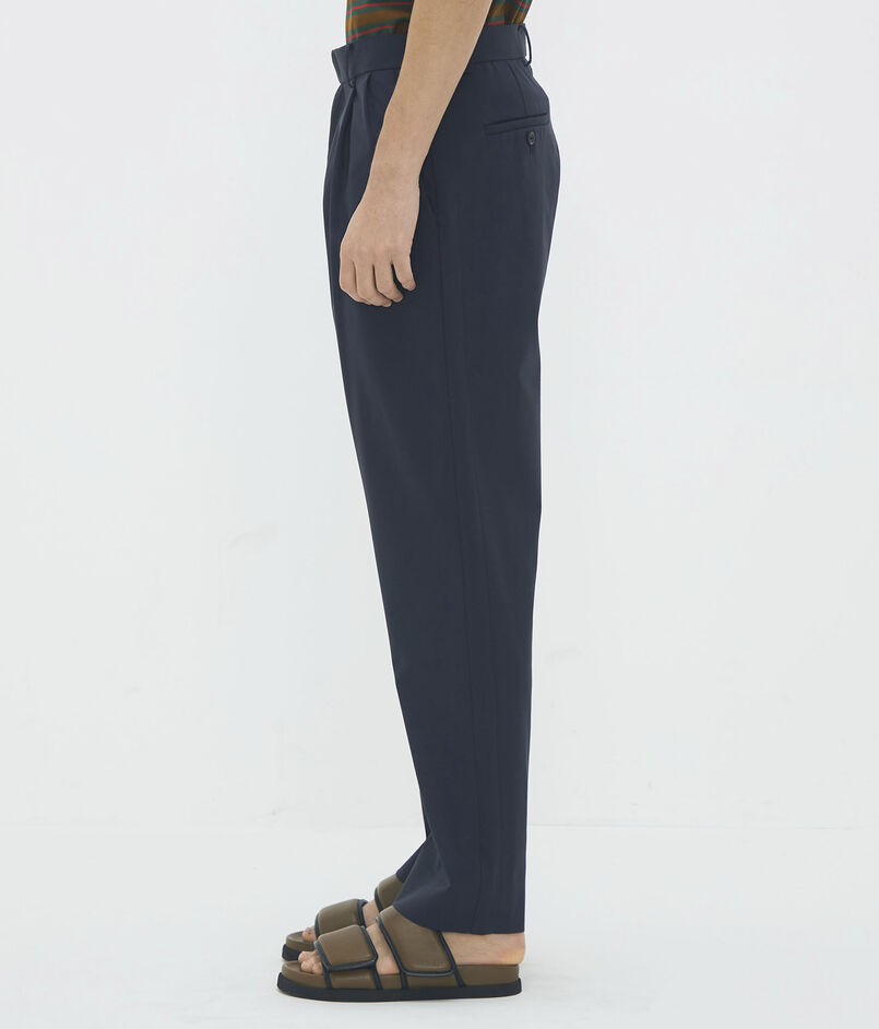 ブランド定番の2/27ウールを高密度に織り上げ、特殊加工で仕上げたウールタイプライター素材を使用したシリーズ。