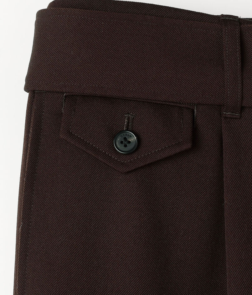 ブランド定番の高密度ウールギャバジンをソフト仕上げしたオリジナル素材を使用。