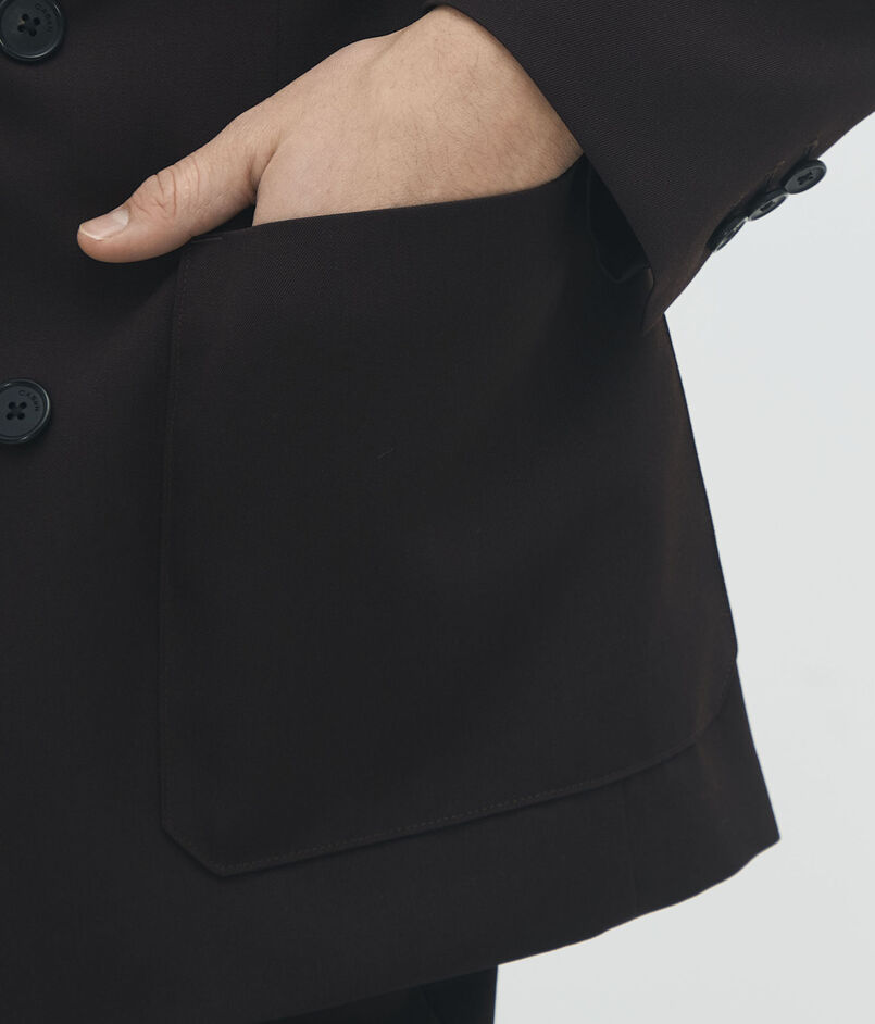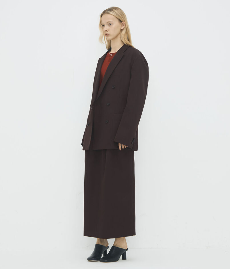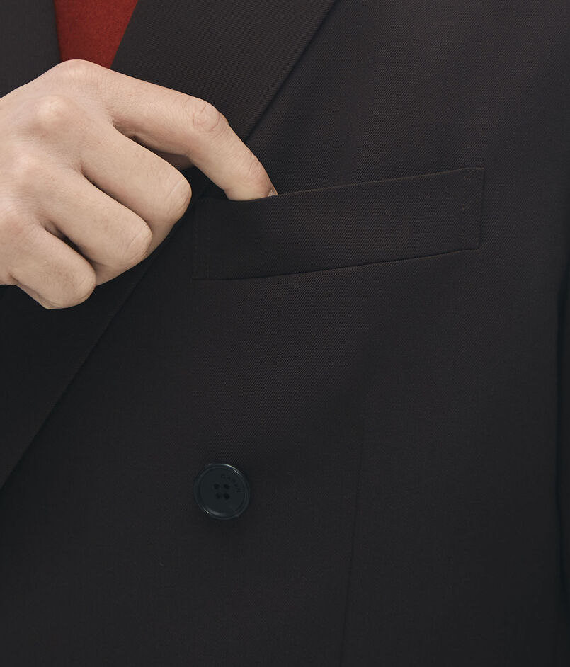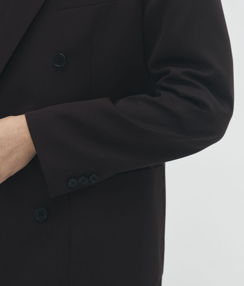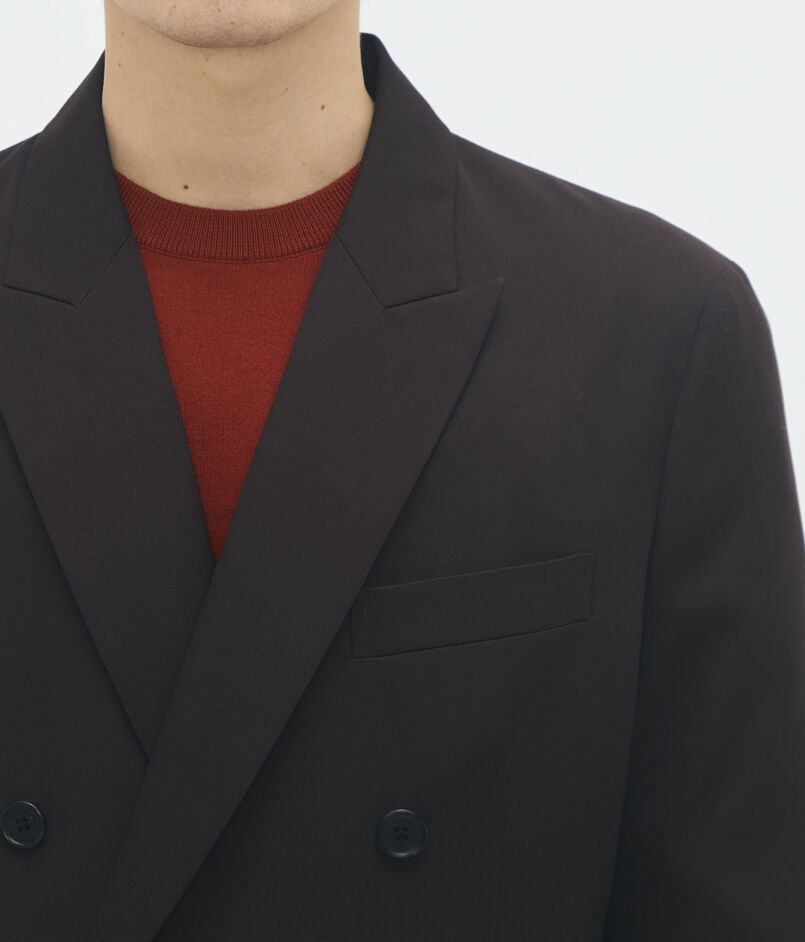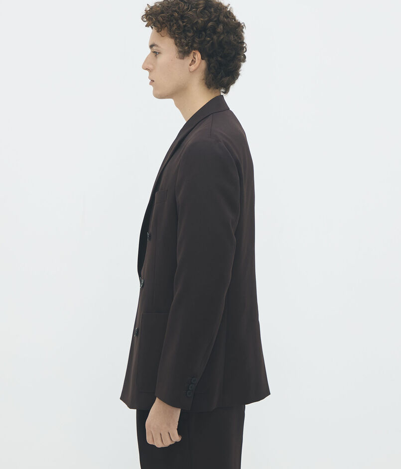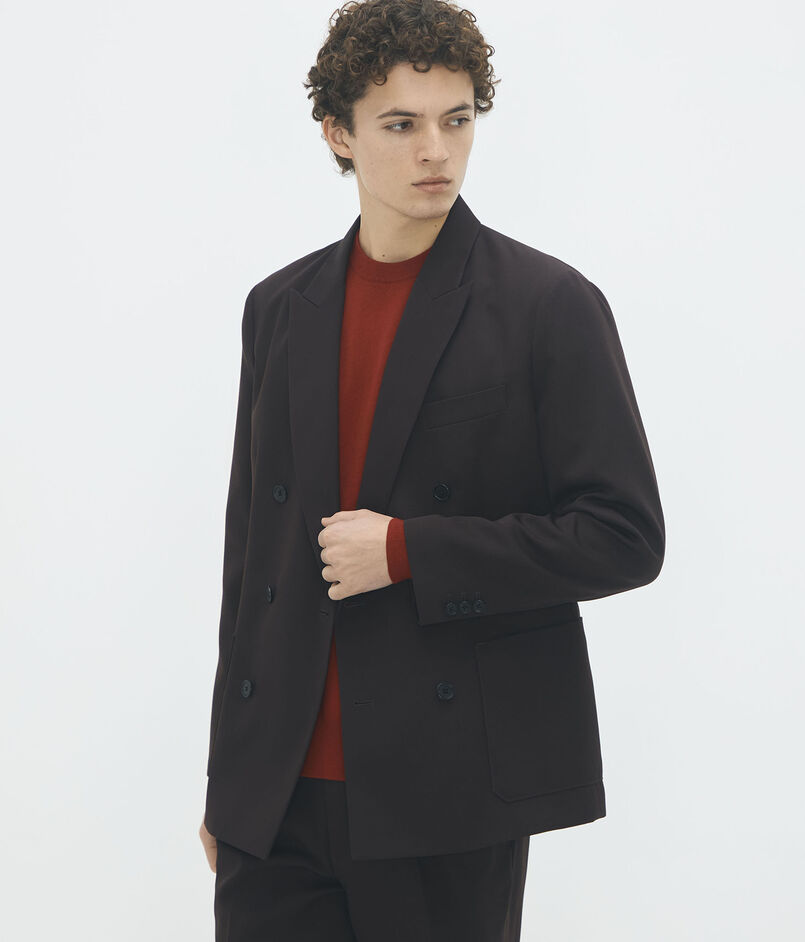 ウエストシェイプの少ないボクシーなリラックスフィットながら、しっかりとした胸まわりやラペルがポイント。