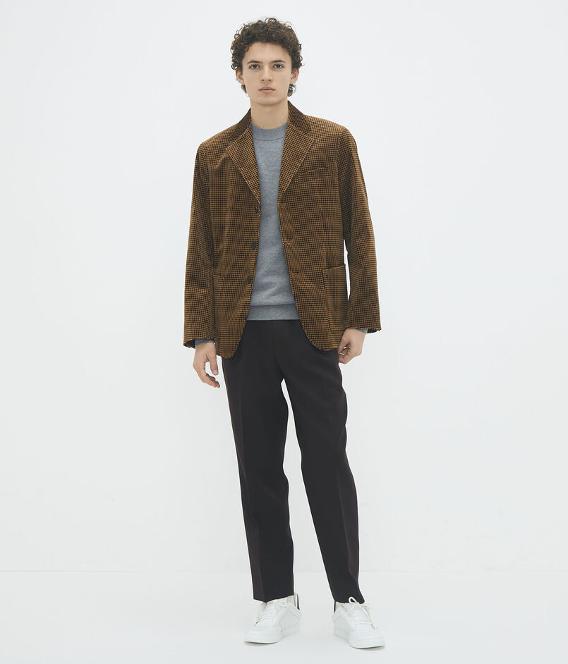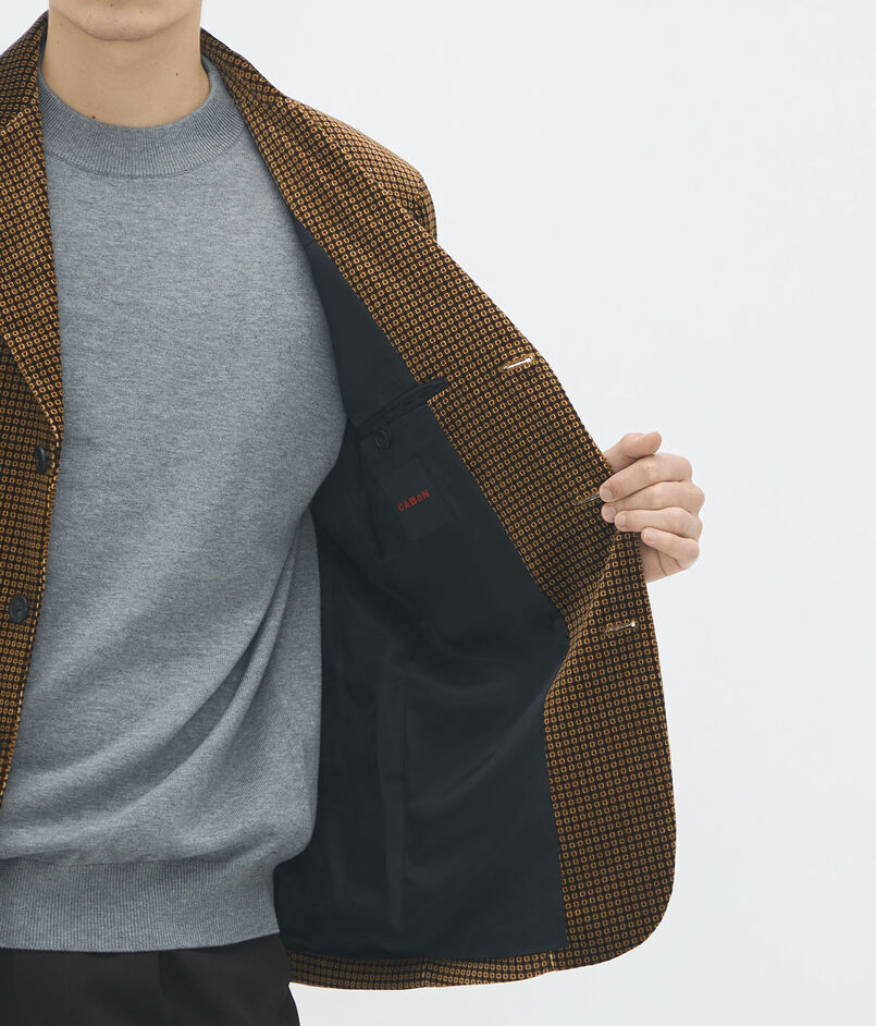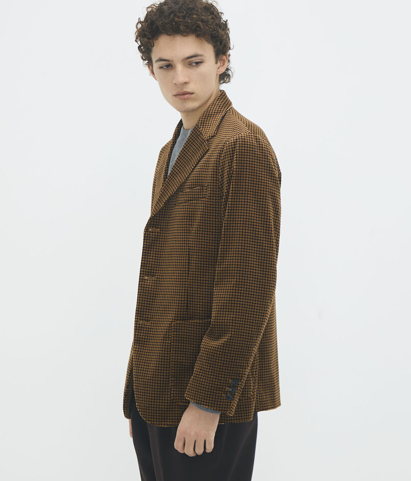 肩まわりをソフトに仕立てているため、体に自然になじみやすく、男女問わずに着用しやすいバランス。