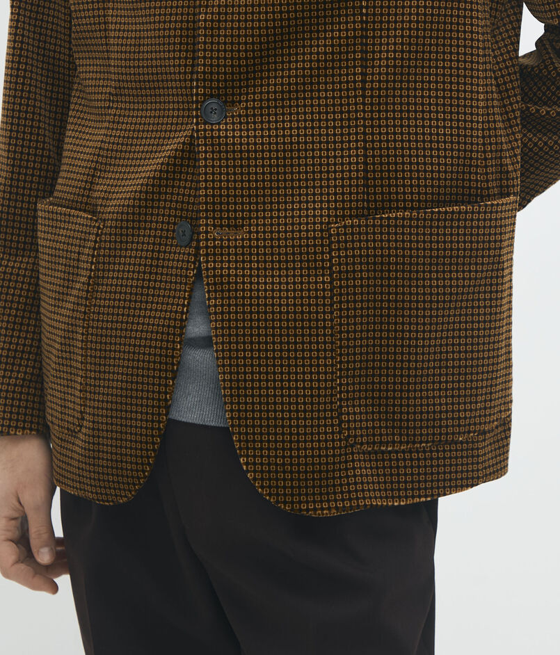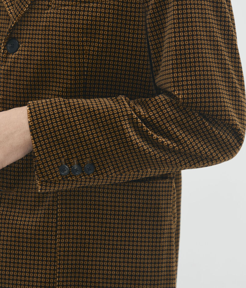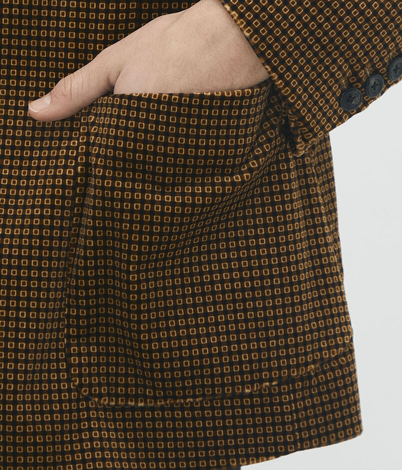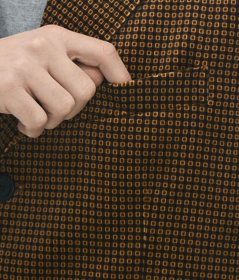 上質なベルベットに小さなジオメトリック柄をプリントしたイタリアPONTOGLIO社のインポート生地を使用。