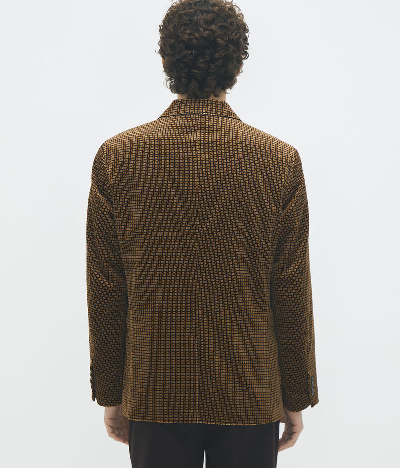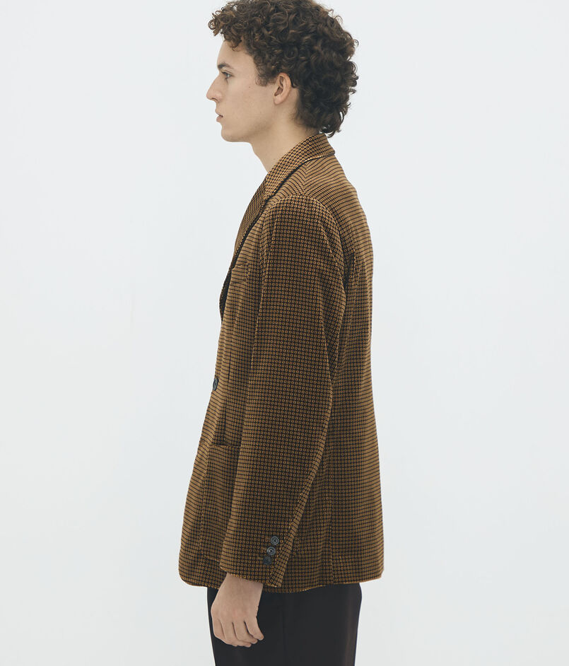エレガントなベルベット素材に極薄肩パッド、ハリを出すための裄綿とソフトでありながらもきれいにドレープが出るような仕立てに。