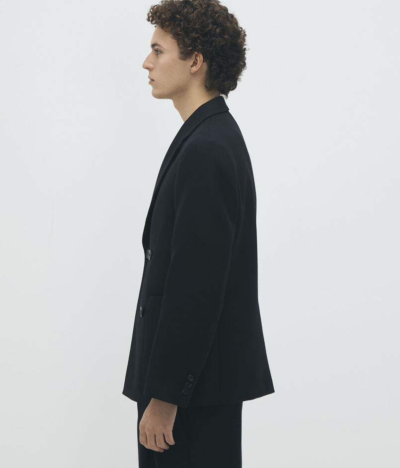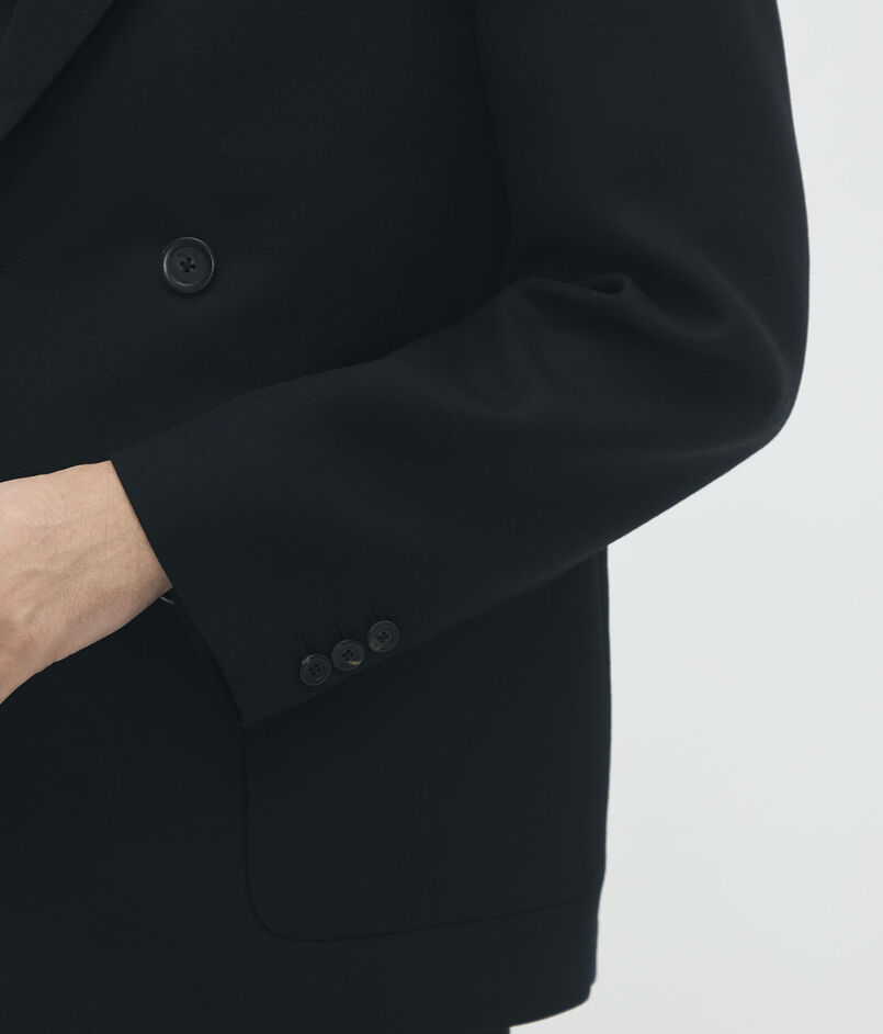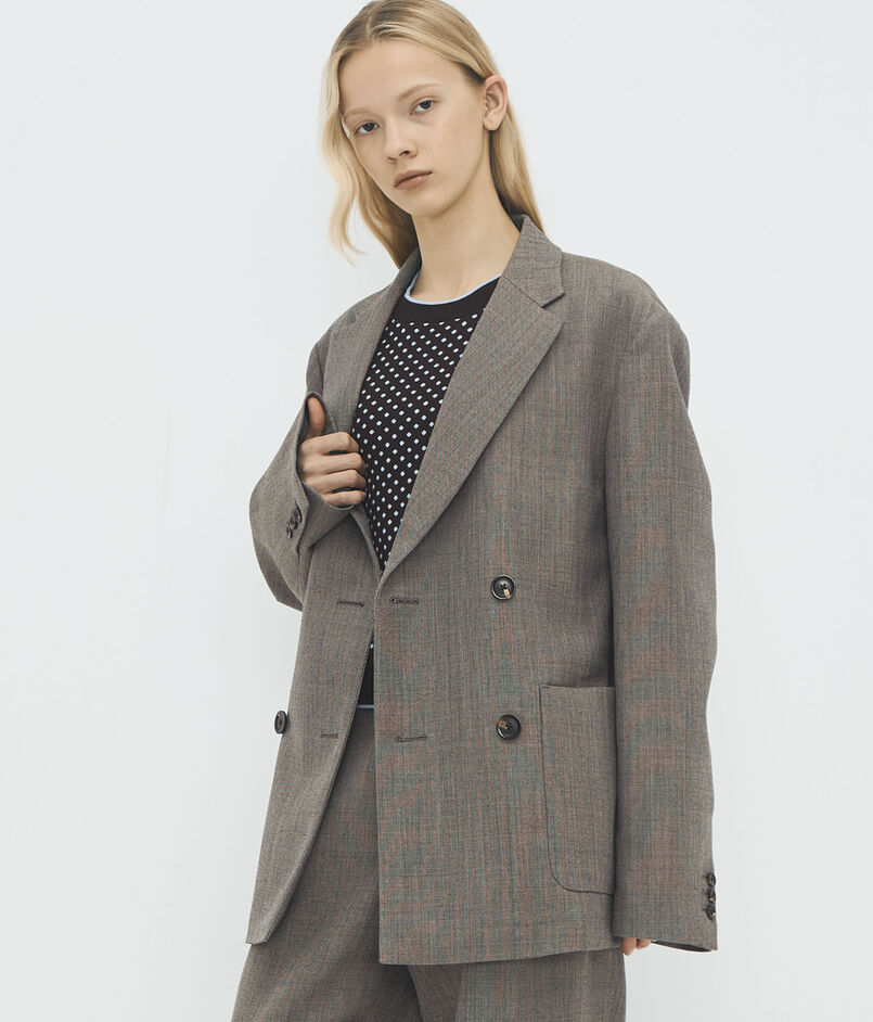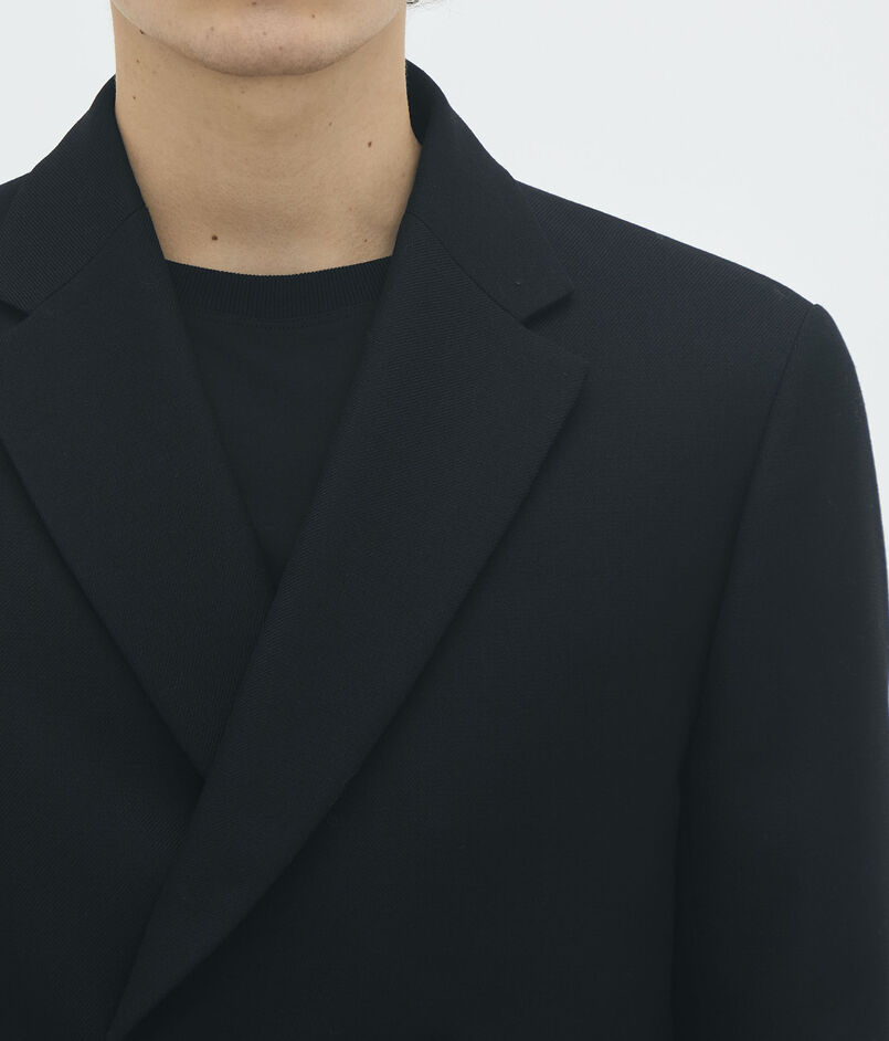 薄く柔らかな肩パッドに加え、ユキ綿を仕込むことで肩まわりや上胸のラインを美しく整え端正な表情に仕上げました。