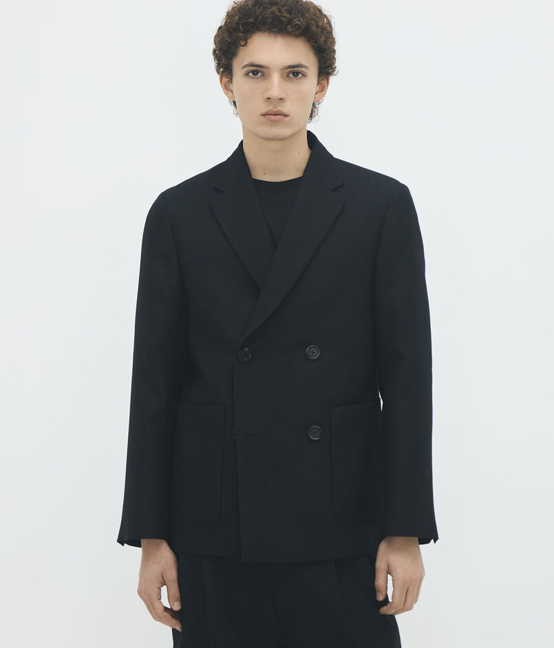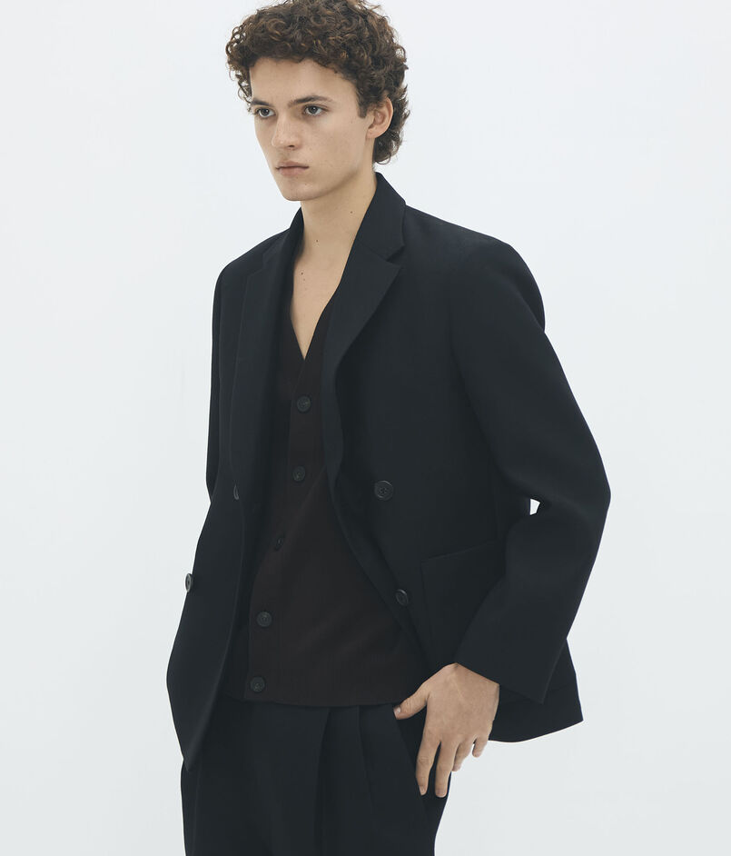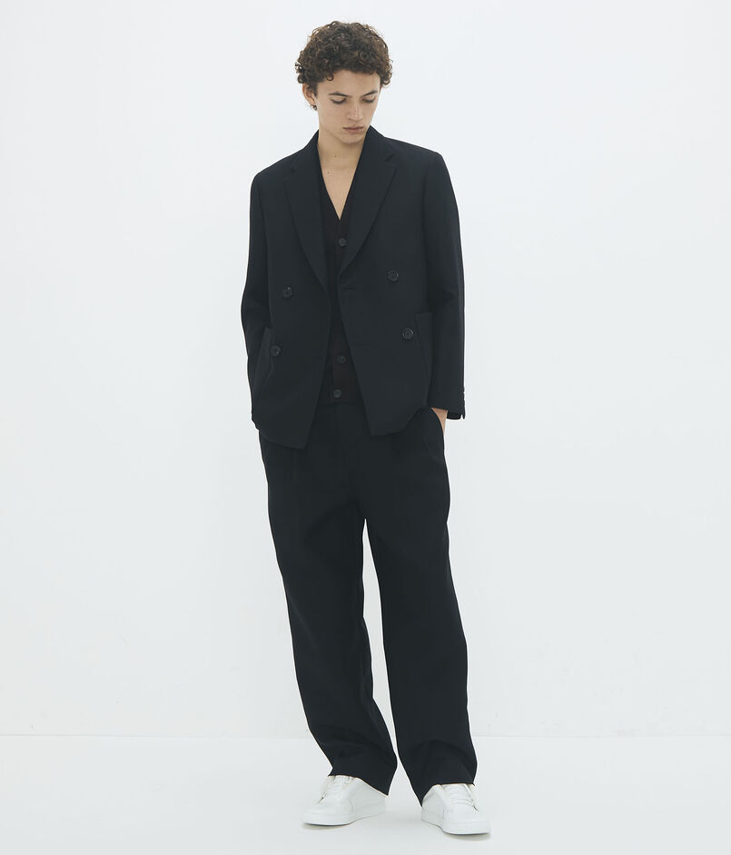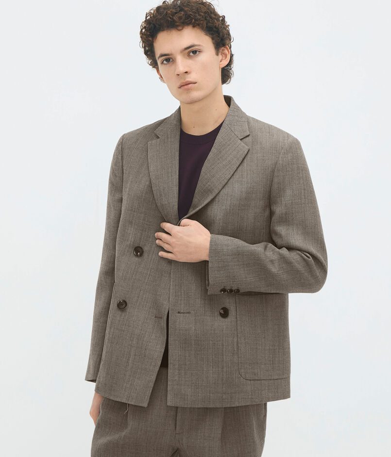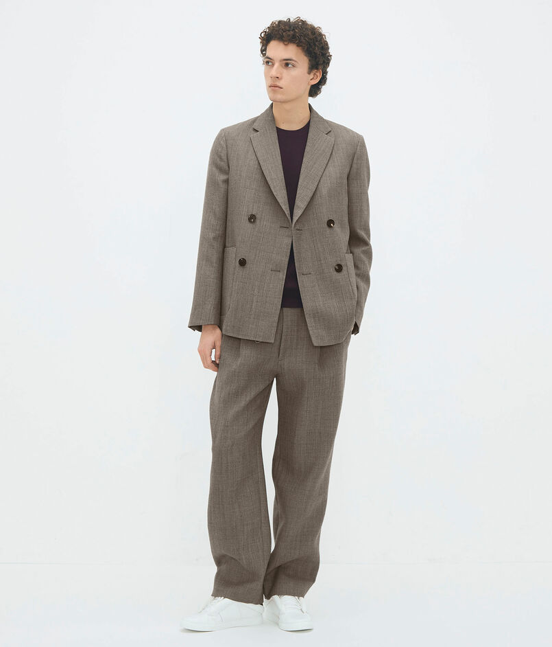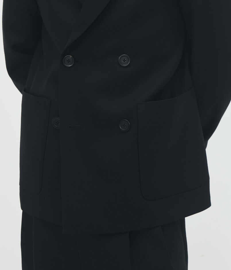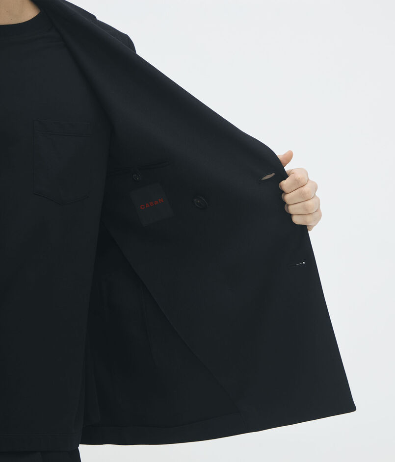 〈CABaN〉らしい存在感のあるノッチドラペルとやや短めのボックスシルエットが特徴の4ボタンジャケット。