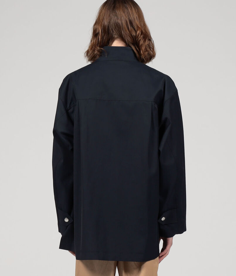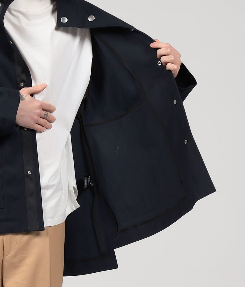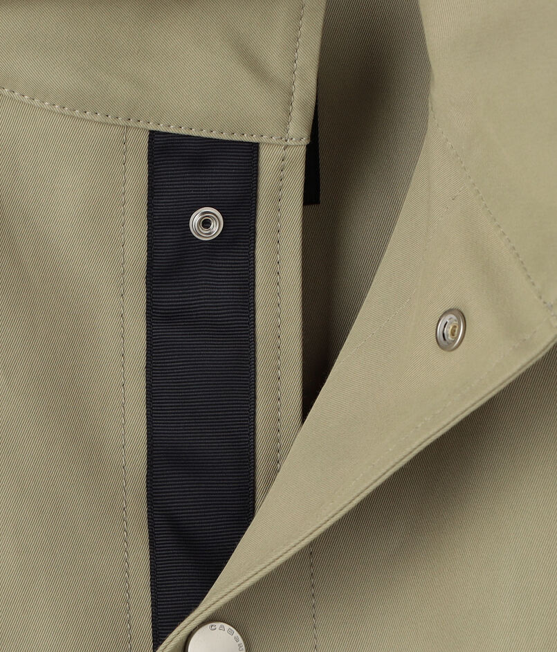 経糸にやや光沢感のあるレーヨン、緯糸に毛羽を抑えるために双糸使いにしたコットンを高密度に打ち込み、レーヨンの落ち感と微光沢感を併せ持った新感覚のチノ素材を使用したシリーズ。