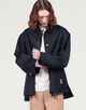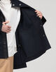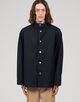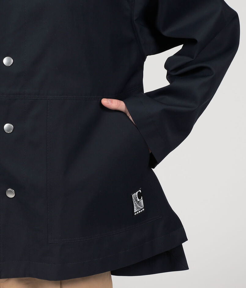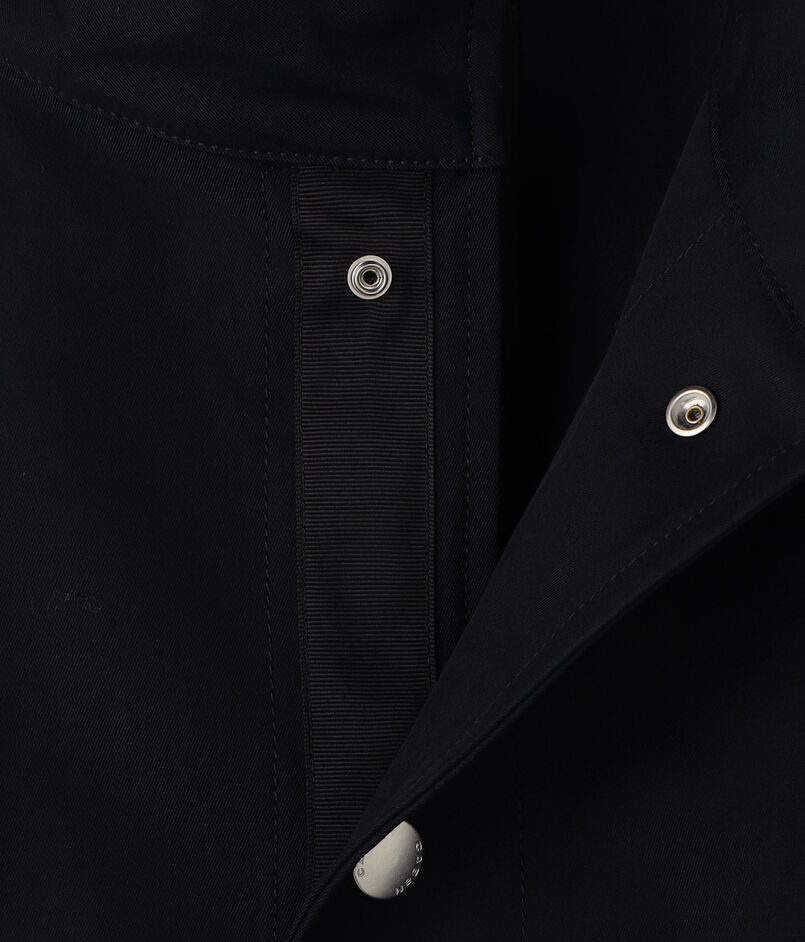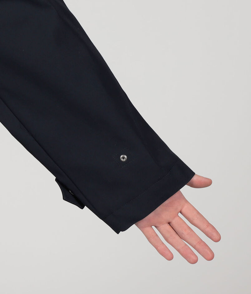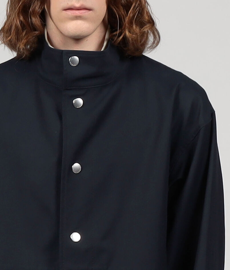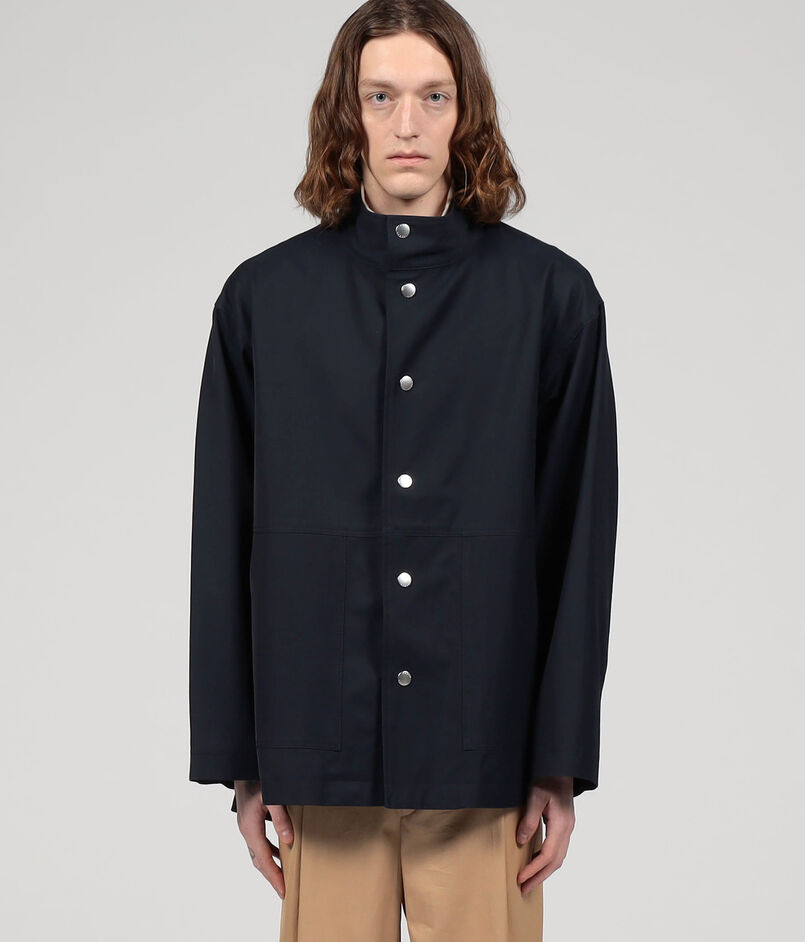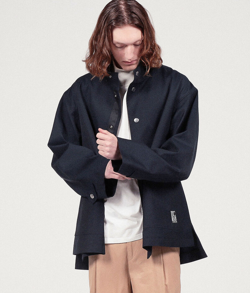 スタンドカラーと裾の広がったAラインのシルエットが新鮮なショートコートです。