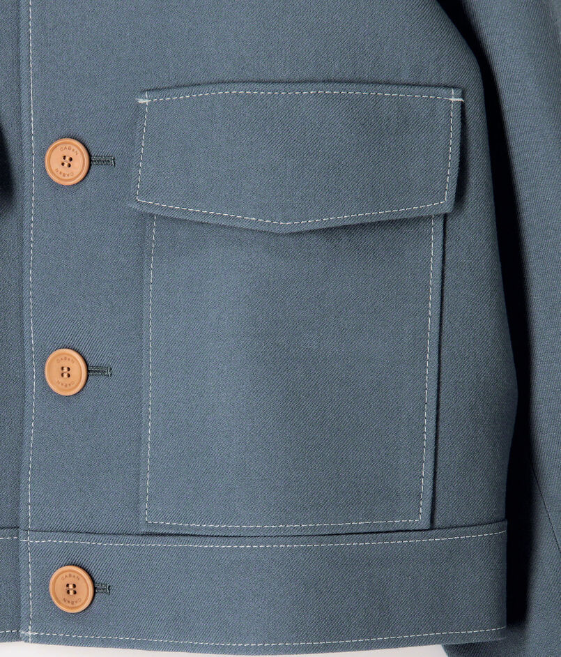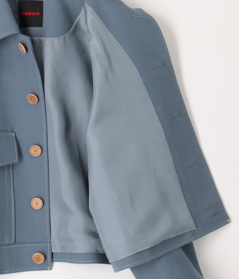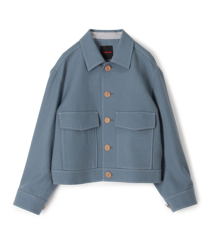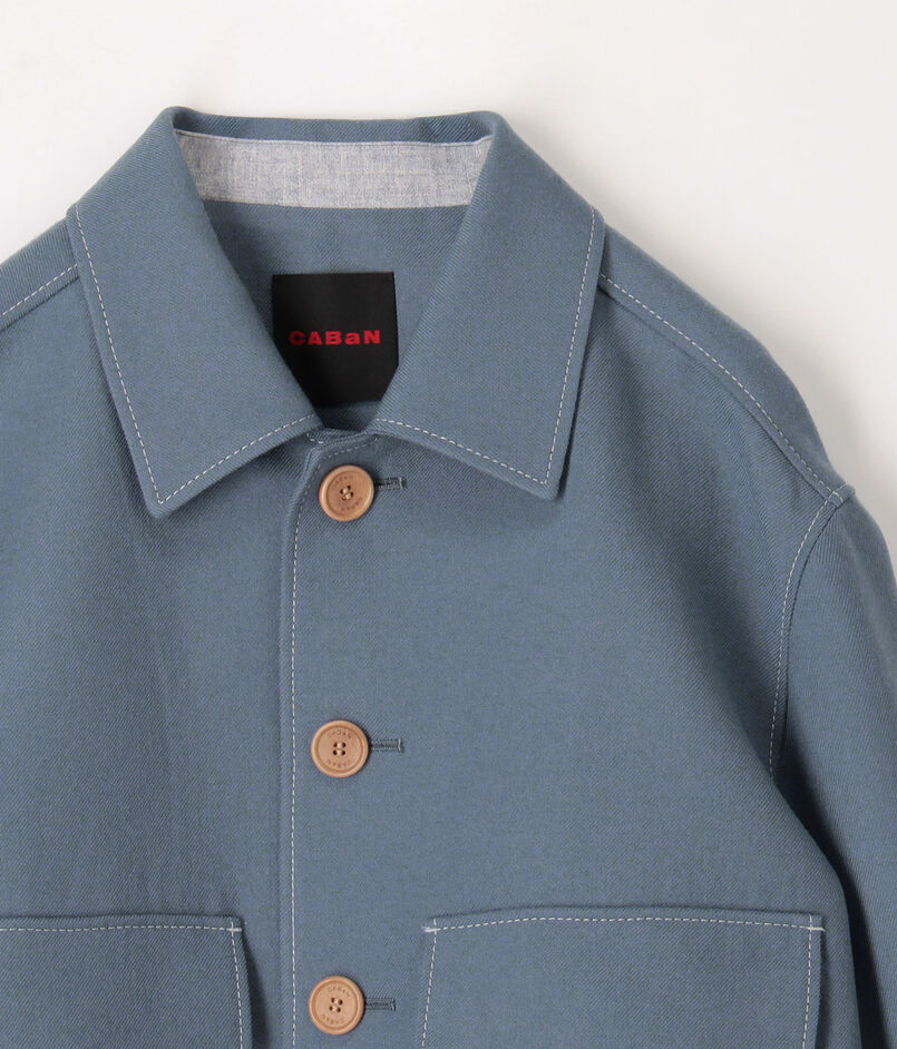 フラップ付きのパッチポケットや大き目なボタンなど〈CABaN〉らしいディテールの効いた一着です。